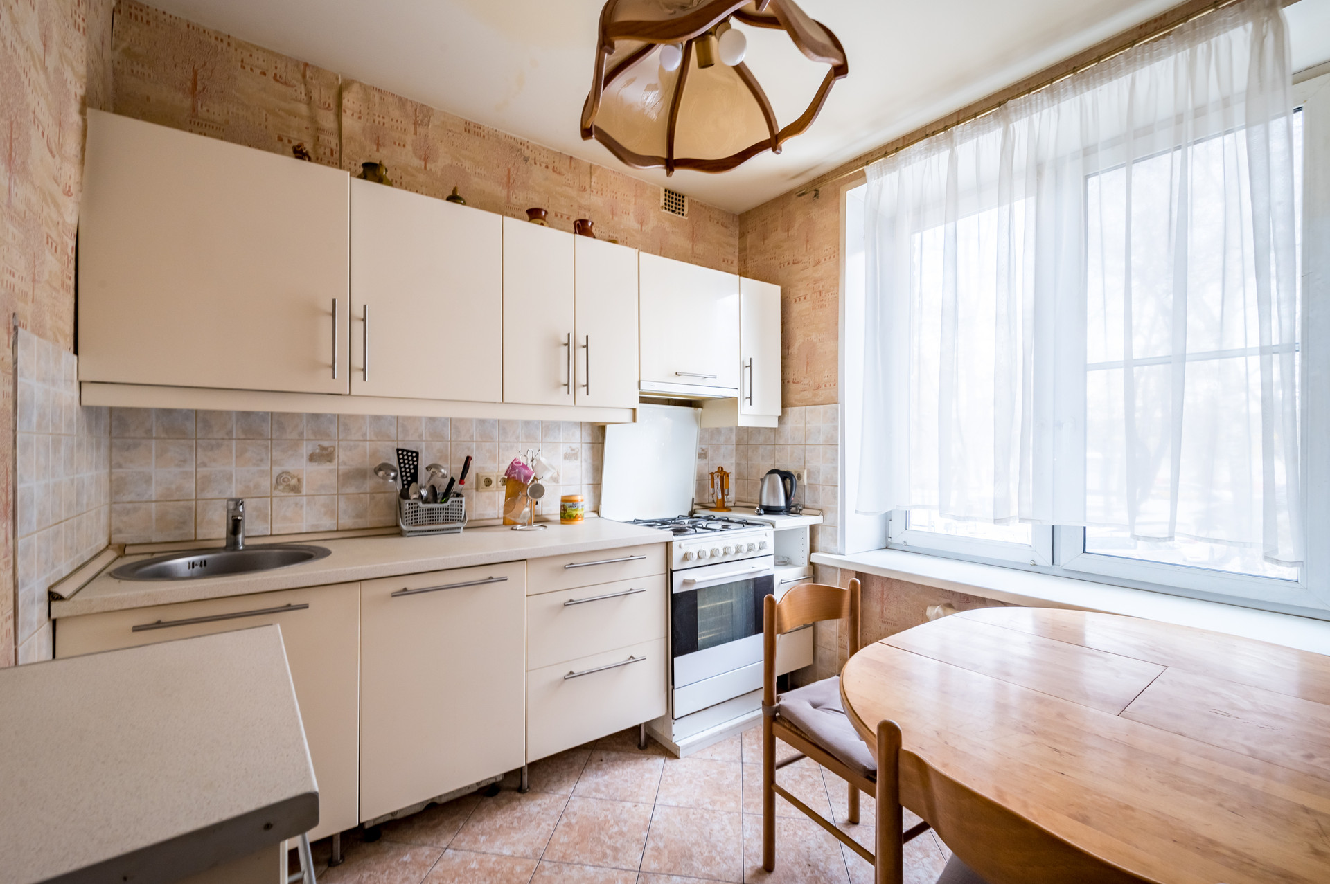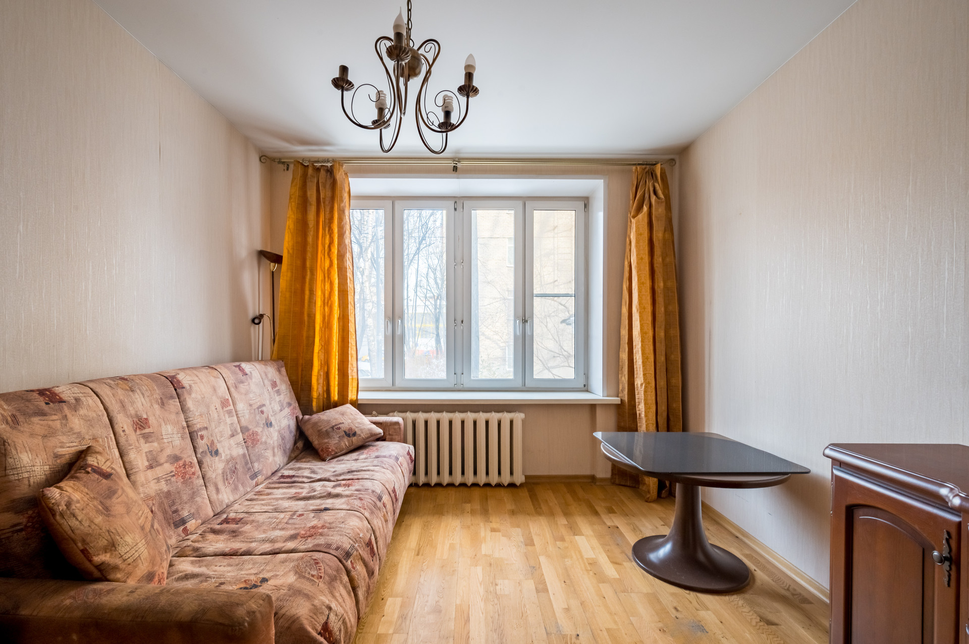 Объект недвижимости: просторная двухкомнатная квартира в кирпичном четырех подъездном доме, 1959 года постройки. Отличная шумоизоляция и железобетонные перекрытия. Высокий первый этаж. Потолки 2.65м. Благоустроенный двор с детской площадкой окруженный деревьями. Хорошее жилое состояние – пол ламинат, окна стеклопакет, санузел раздельный в плитке до потолка. Есть мебель и кухня. Распашная изолированная планировка. Большая кухня 10 кв.м и две изолированных спальни 14+18 кв.м. Балкона нет.