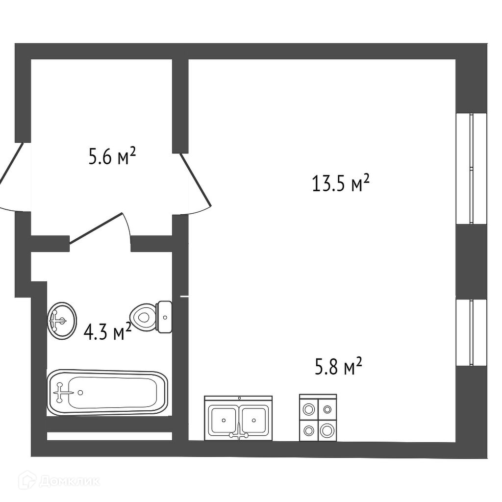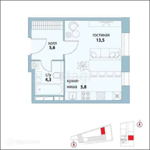 Общая площадь 29.3 м2