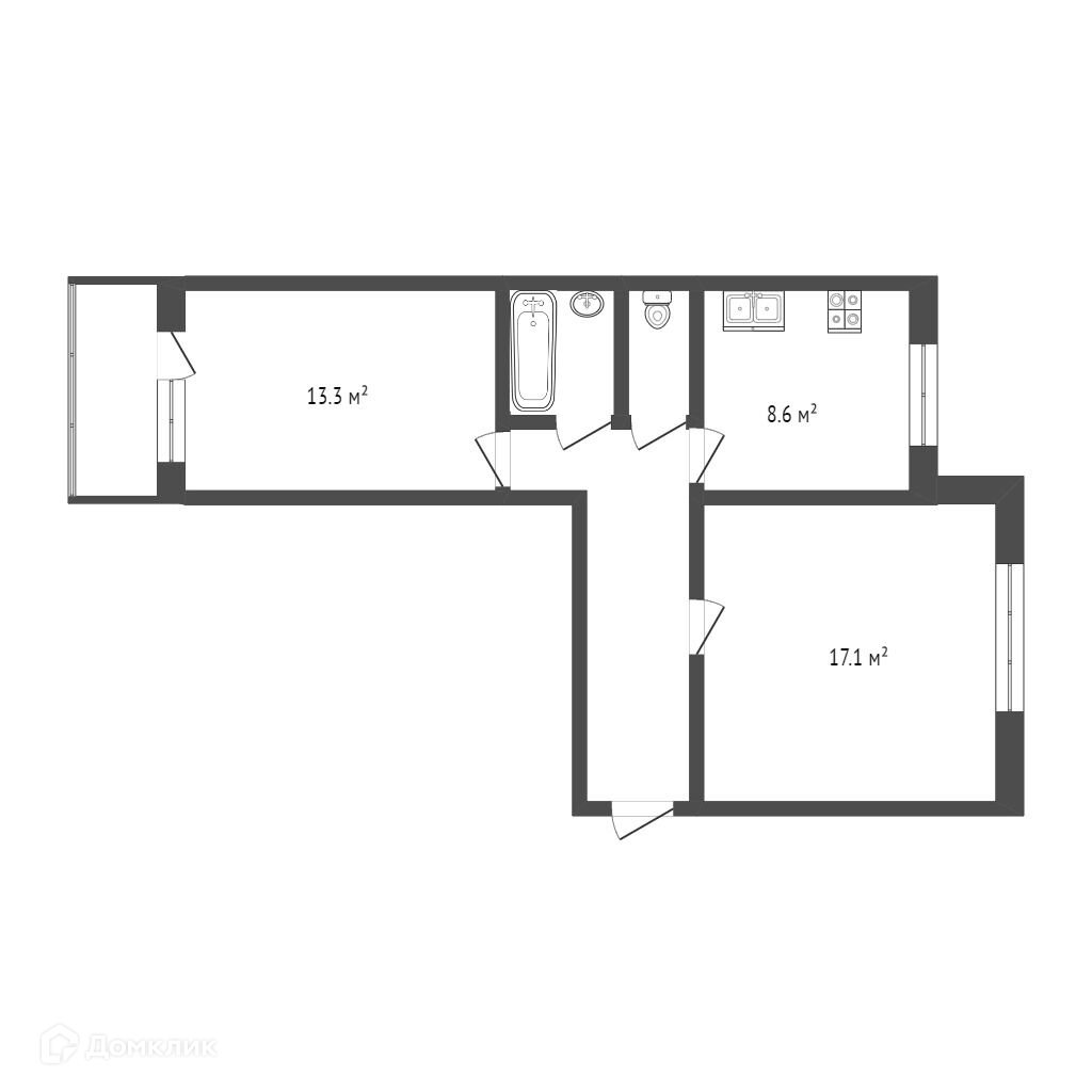 Общая площадь 52 м2