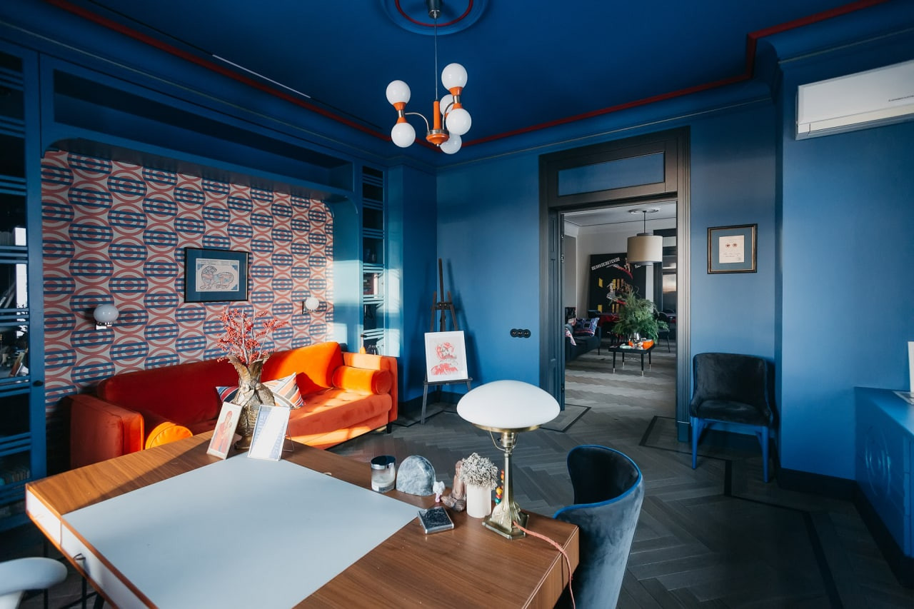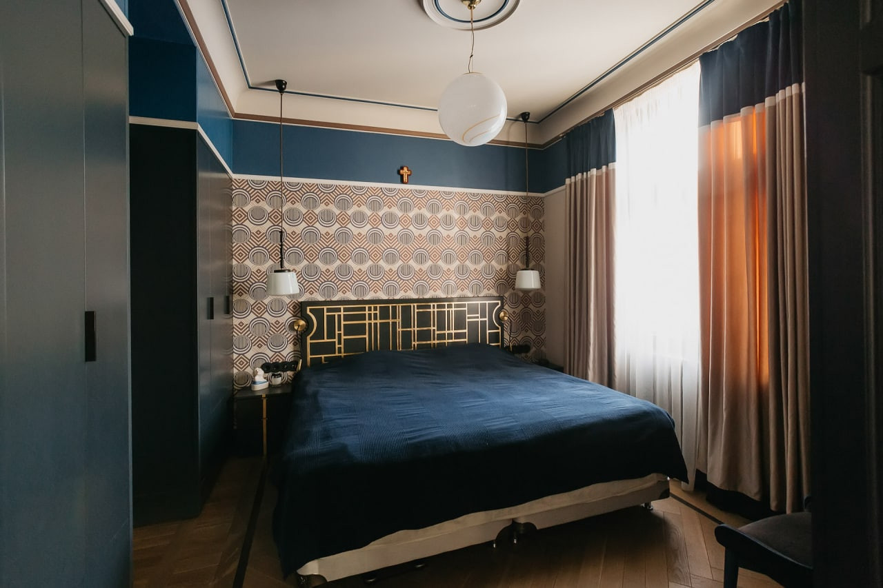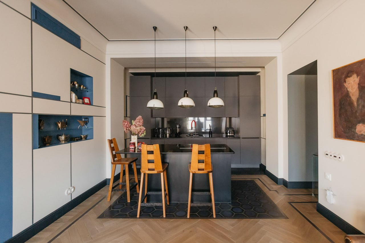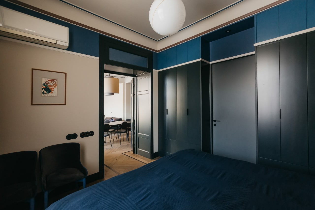 О КВАРТИРЕ: Функциональная и разумная планировка. Гостиная-столовая объединена с кухней, спальня со своим санузлом, кабинет, гардеробная, гостевой санузел, кладовая-постирочная с дополнительной хозяйственной раковиной. Высота потолков 3,2 м. Свежий эксклюзивный авторский ремонт в стиле авангарда 20-х годов прошлого века. Дизайн квартиры был удостоен внимания множества престижных архитектурных изданий (AD, Design mate ипр), квартира была признана одной из 100 лучших дизайнерских квартир мира и опубликована в юбилейном выпуске издания Andrew Martin. Все отделочные материалы премиум класса, натуральный деревянный пол с экологическим покрытием и натуральный каменный пол с подогревом, встроенная мебель, мягкая мебель, обои, межкомнатные двери и оконные рамы - все выполнено по индивидуальному заказу из экологических материалов, с сохранением исторических эскизов и форм эпохи. Элитная сантехника, полностью оборудованная премиальной техникой кухня: электрическая индукционная плита со встроенной вытяжкой, посудомоечная машина, духовой шкаф, холодильник и пр. В квартире сделана эксклюзивная шумоизоляция по всему периметру, полностью заменены электропроводка и система водоснабжения, установлена система очистки воздуха и сплит-ситема, общая система очистки воды и дополнительная система очистки питьевой воды, аква-стоп. Разумно спроектированы вместительные системы хранения – гардеробная с полками-антресолями, шкафы в спальне с внутренней подсветкой, стенной шкаф в коридоре, кладовая–постирочная, встроенные шкафы в санузлах. Все перепланировки оформлены.