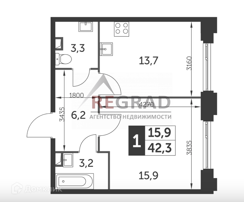 Общая площадь 42 м2