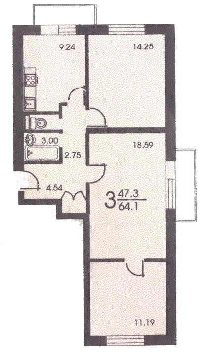 Квартира расположена на 3 этаже, имеет два балкона, просторную кухню, раздельный с/у. Все окна во двор.  Поздний блочный проект II-18, перепланировок не было. Полностью подготовлена к ремонтным работам.