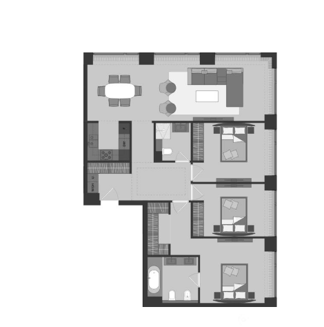 двухуровневых квартир и пентхаусов. Площадь варьируется от 40 кв.м до