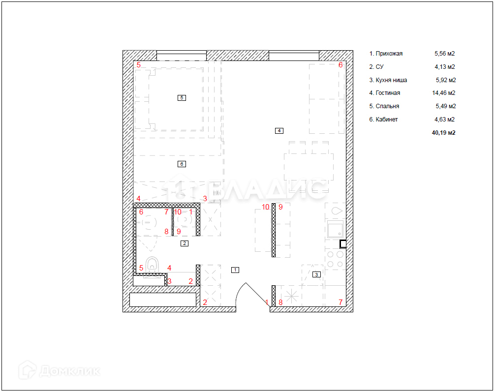 Общая площадь 40 м2