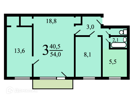 Общая площадь 55 м2