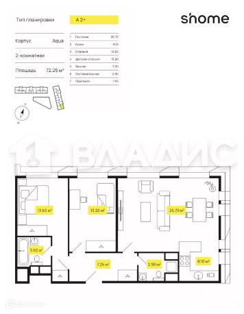 Общая площадь 73 м2