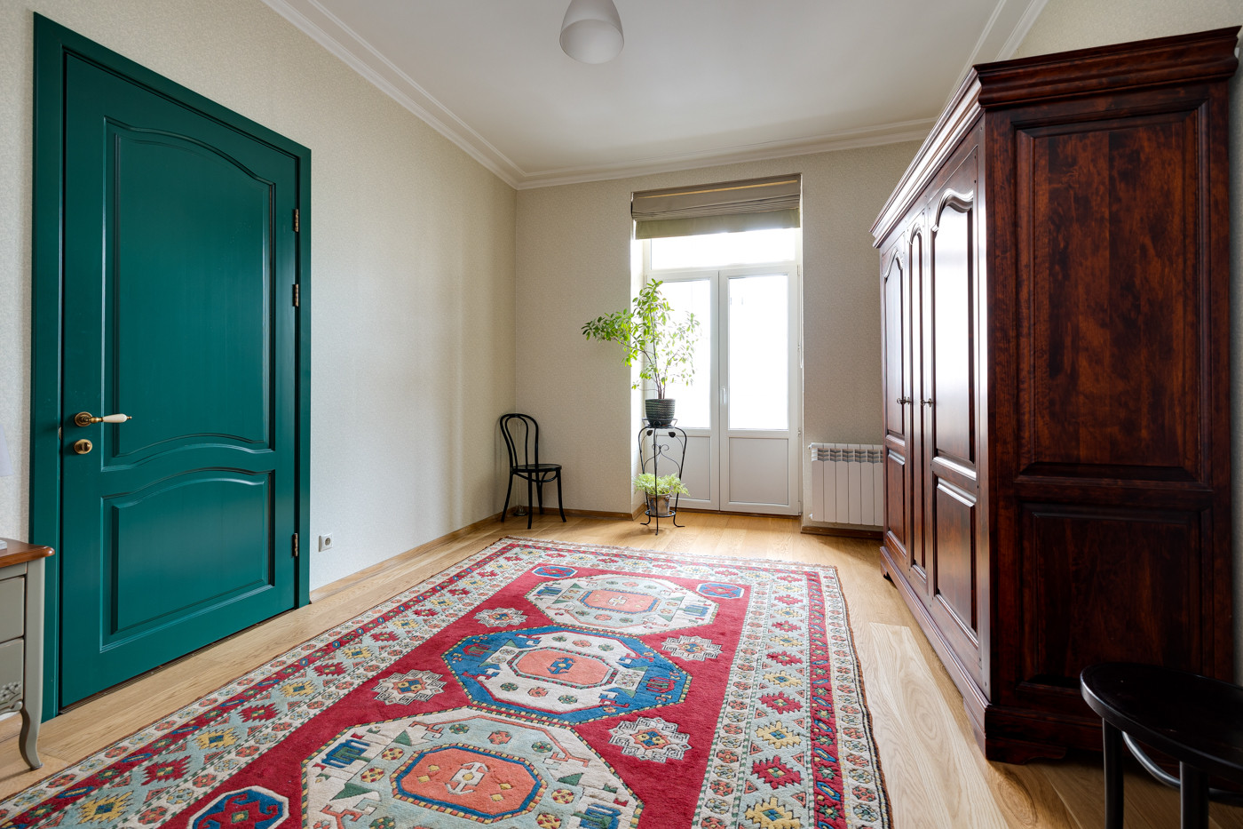 Сталинский дом. Железобетонные перекрытия. Высота потолка 3 метра. Окна во двор.  Нестандартная, но очень комфортная для проживания планировка, кухня 11,3 кв.м. с установленным кухонным гарнитуром,  светлая и просторная комната 17,7 кв. с выходом на застеленный балкон, большой совмещенный санузел, оборудованная кладовая комната, много мест хранения. Квартира очень тёплая и уютная, расположена в середине дома.