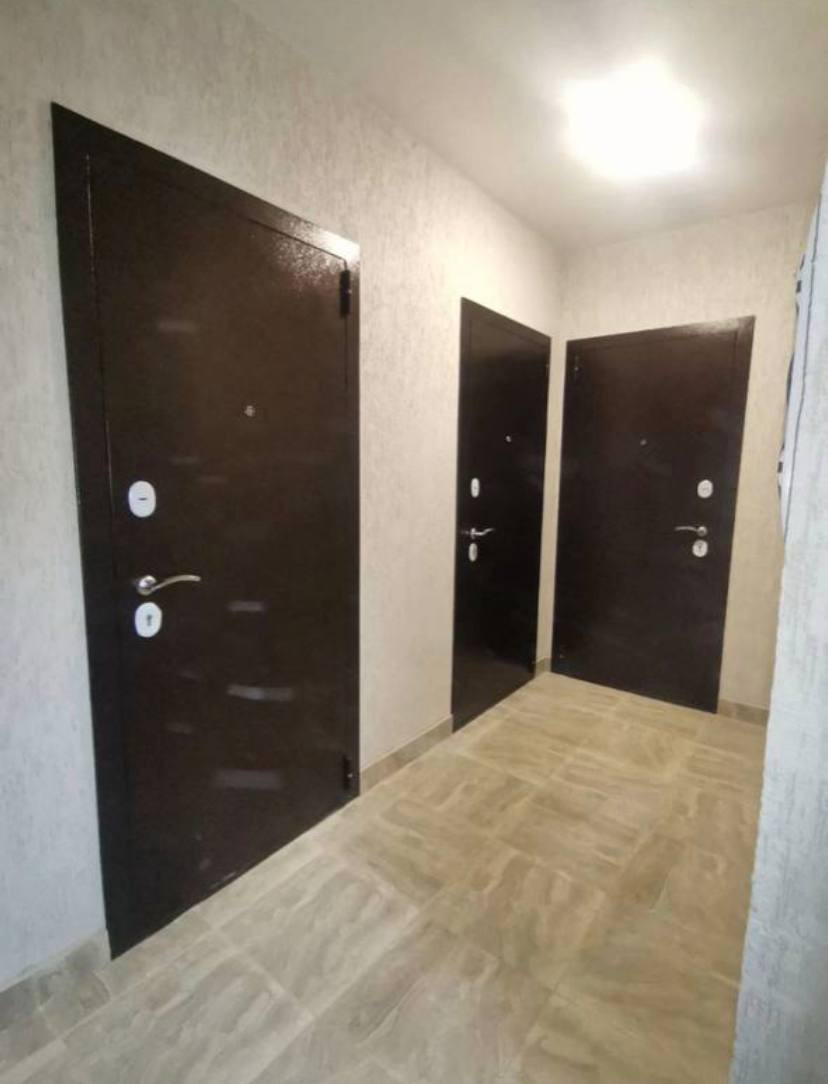 *** Место общего пользования: пол-- керамогранитный , натяжной потолок , декоративная штукатурка на стенах, точечные светильники с датчиками движени