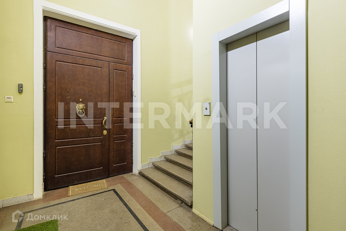 Подъезд отреставрирован, на стенах и потолке сохранена лепнина.