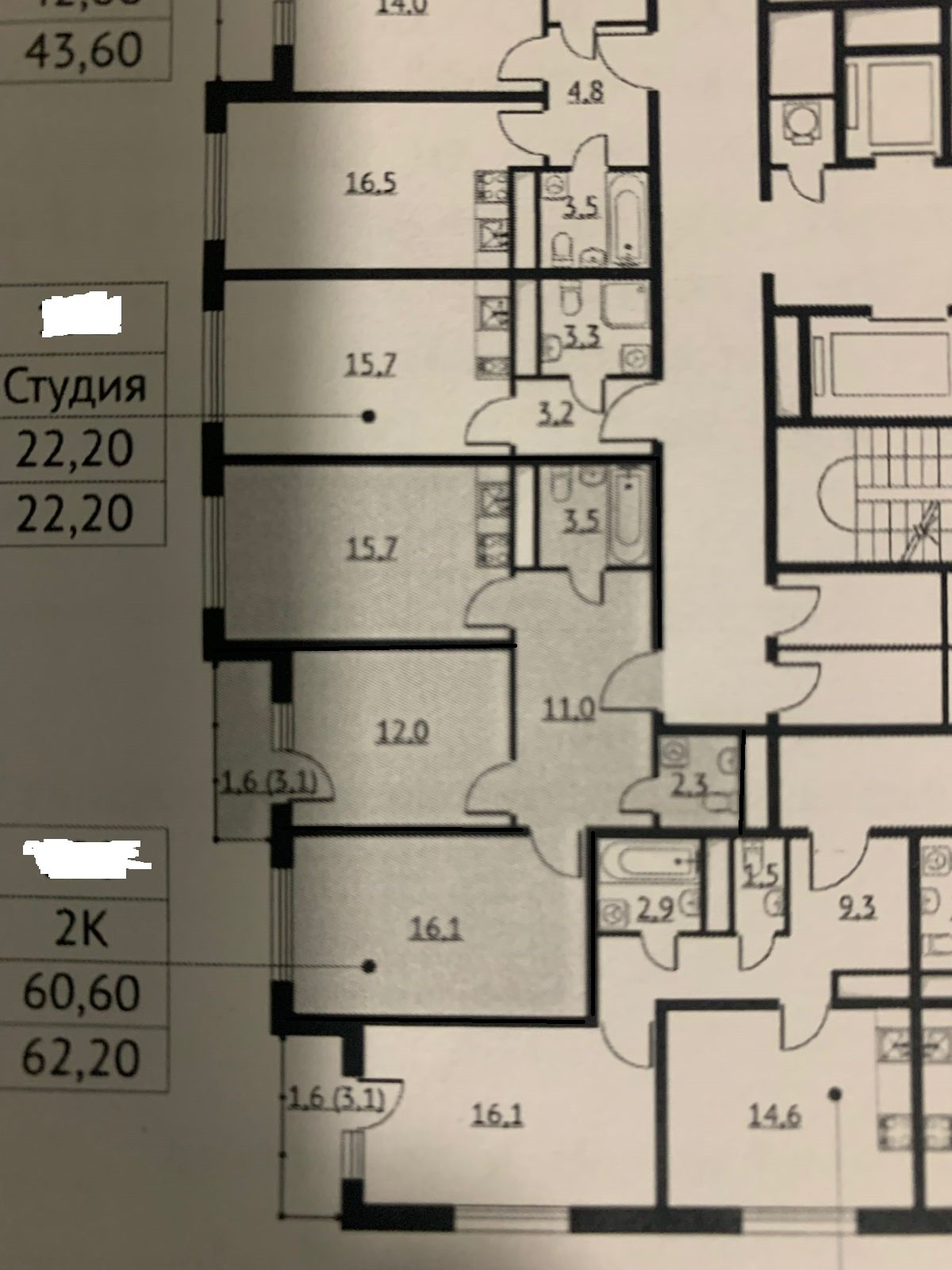 Общая площадь 62.2 м2