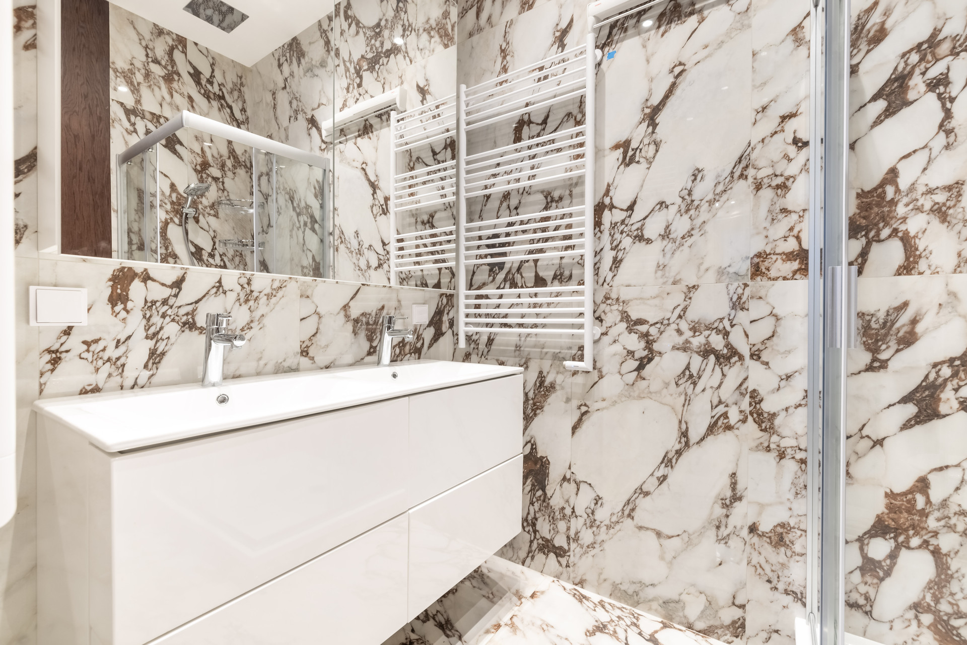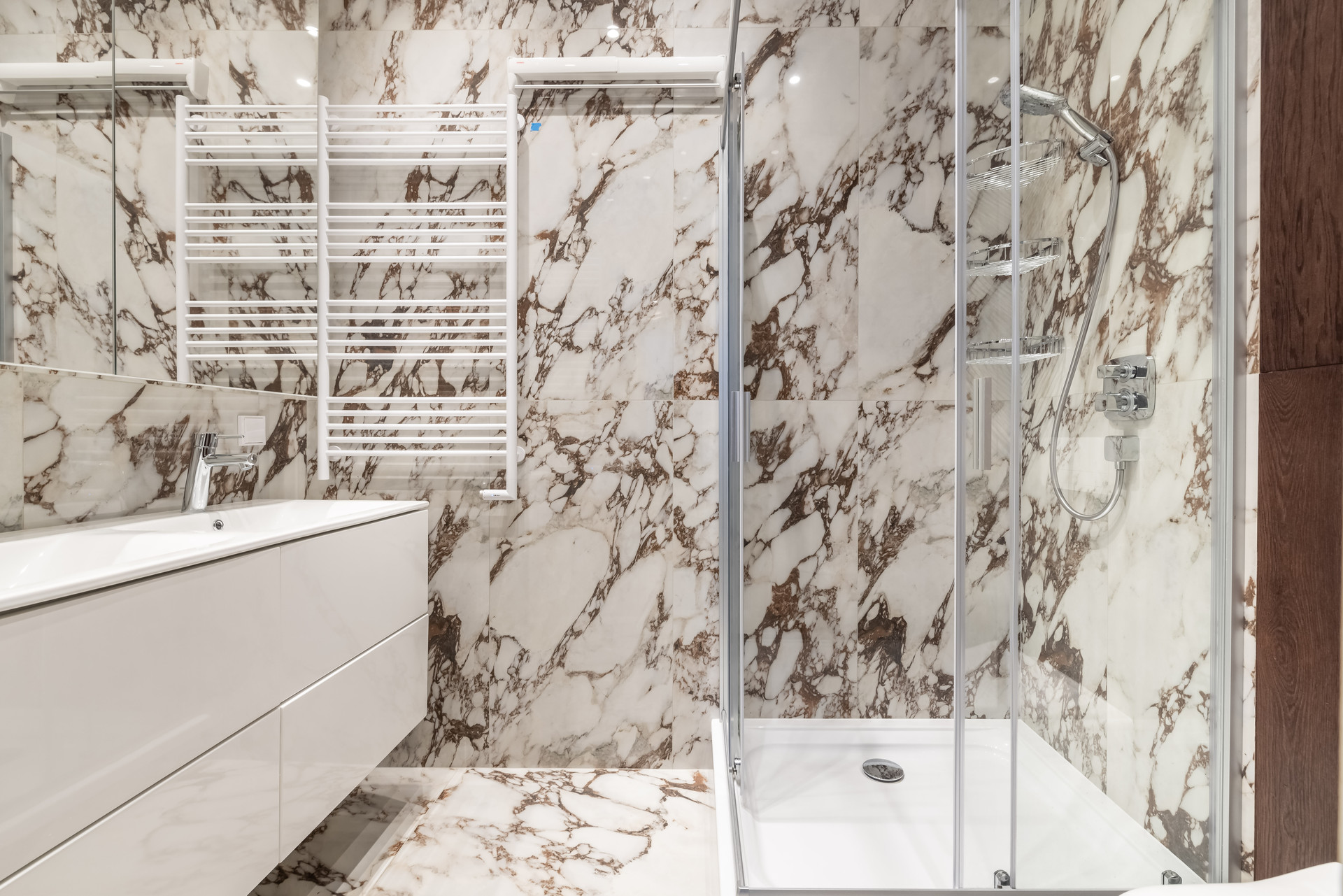 В санузлах ванная и душевая кабина, двойные раковины, канальные вытяжные вентиляторы, все полы из плитки с подогревом. Электрические полотенцесушители Сунержа. Система защиты от протечек Нептун Смарт. Проточный водонагреватель Schneider.