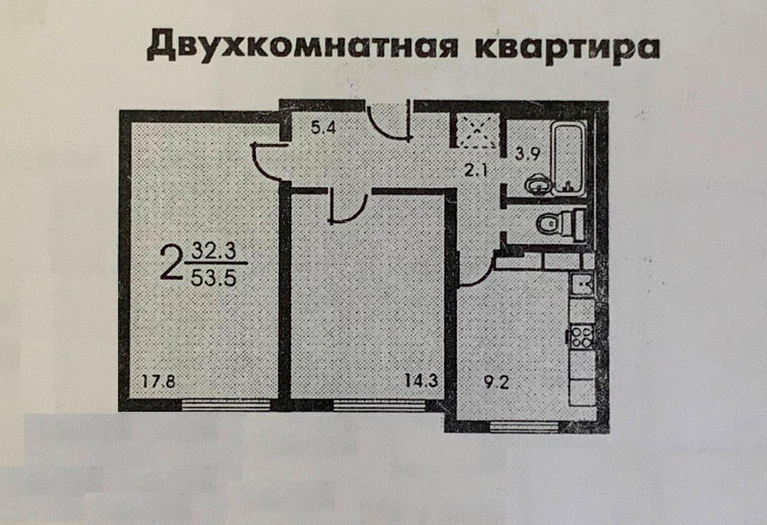 Общая площадь 53.9 м2
