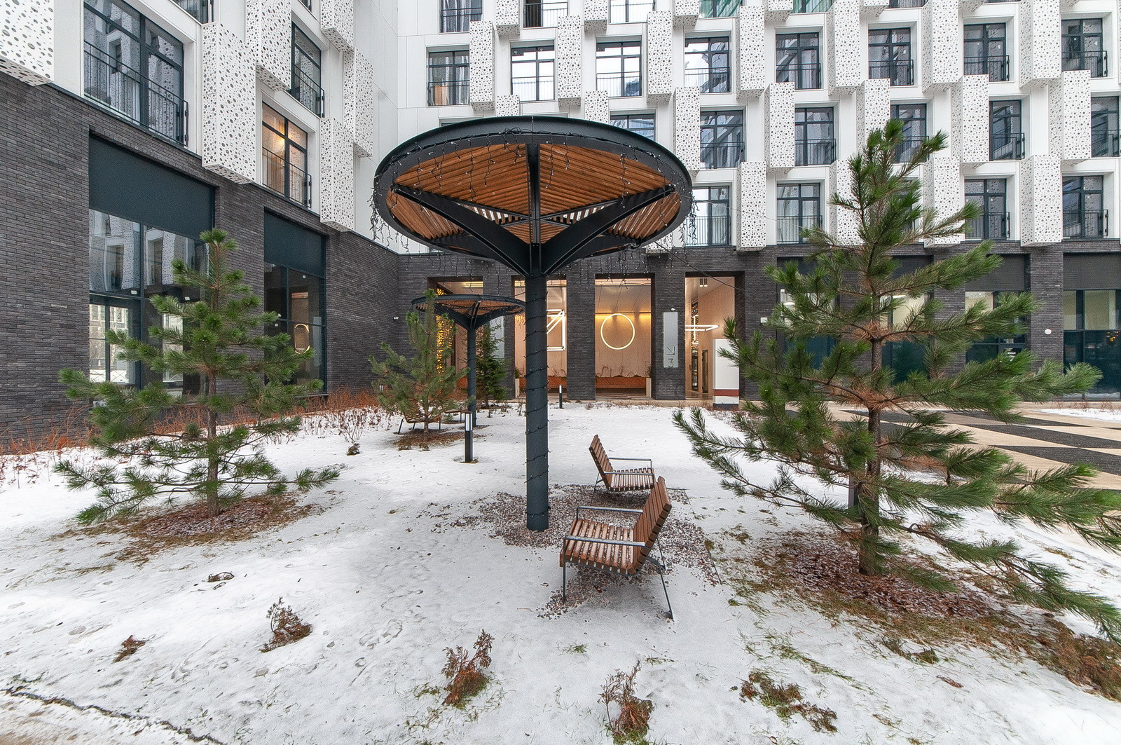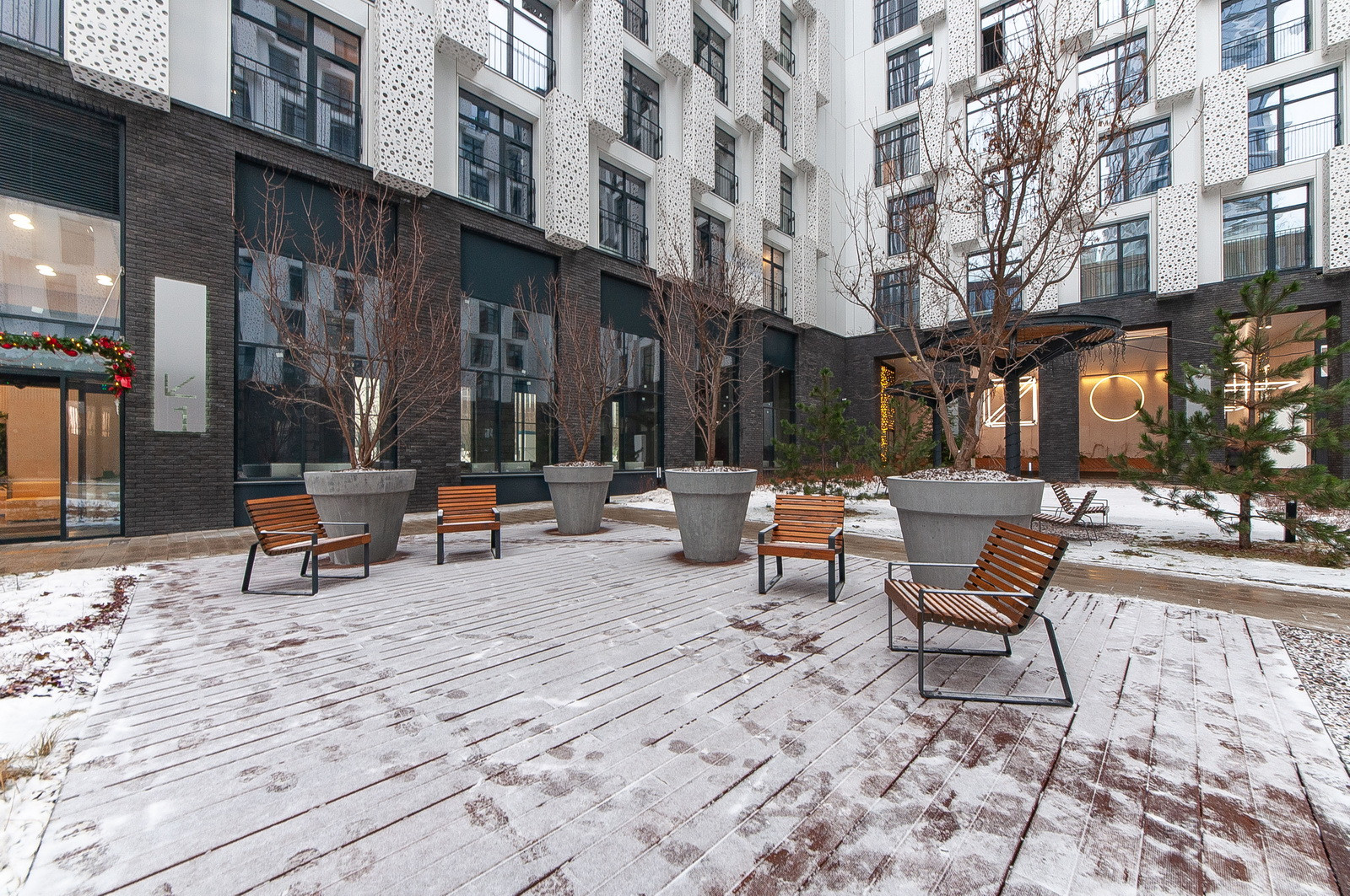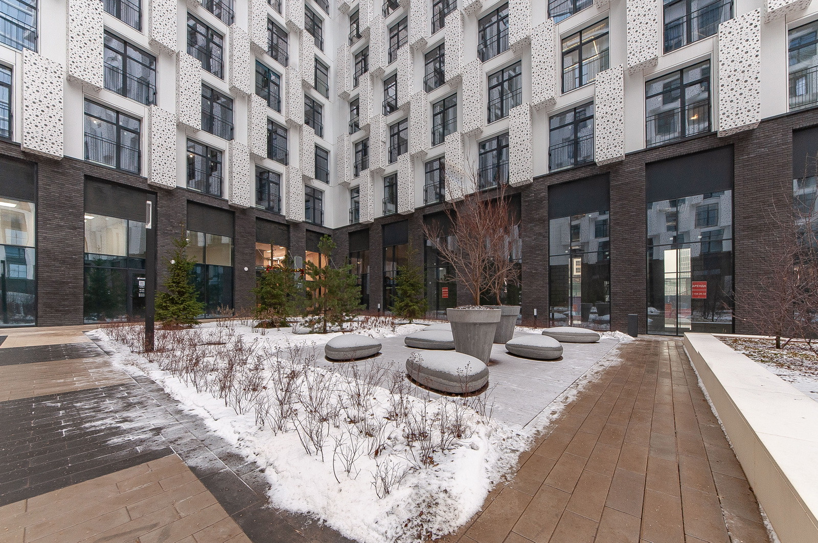 В ЖК есть собственный ухоженный внутренний двор с детскими, спортивными площадками, точками для занятий йогой, местами для отдыха.