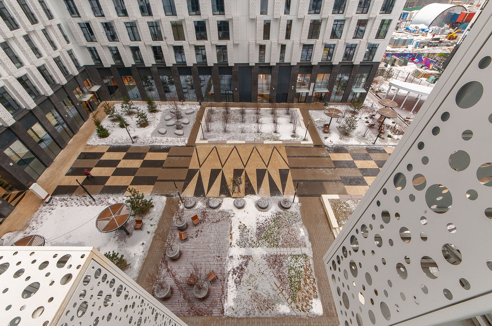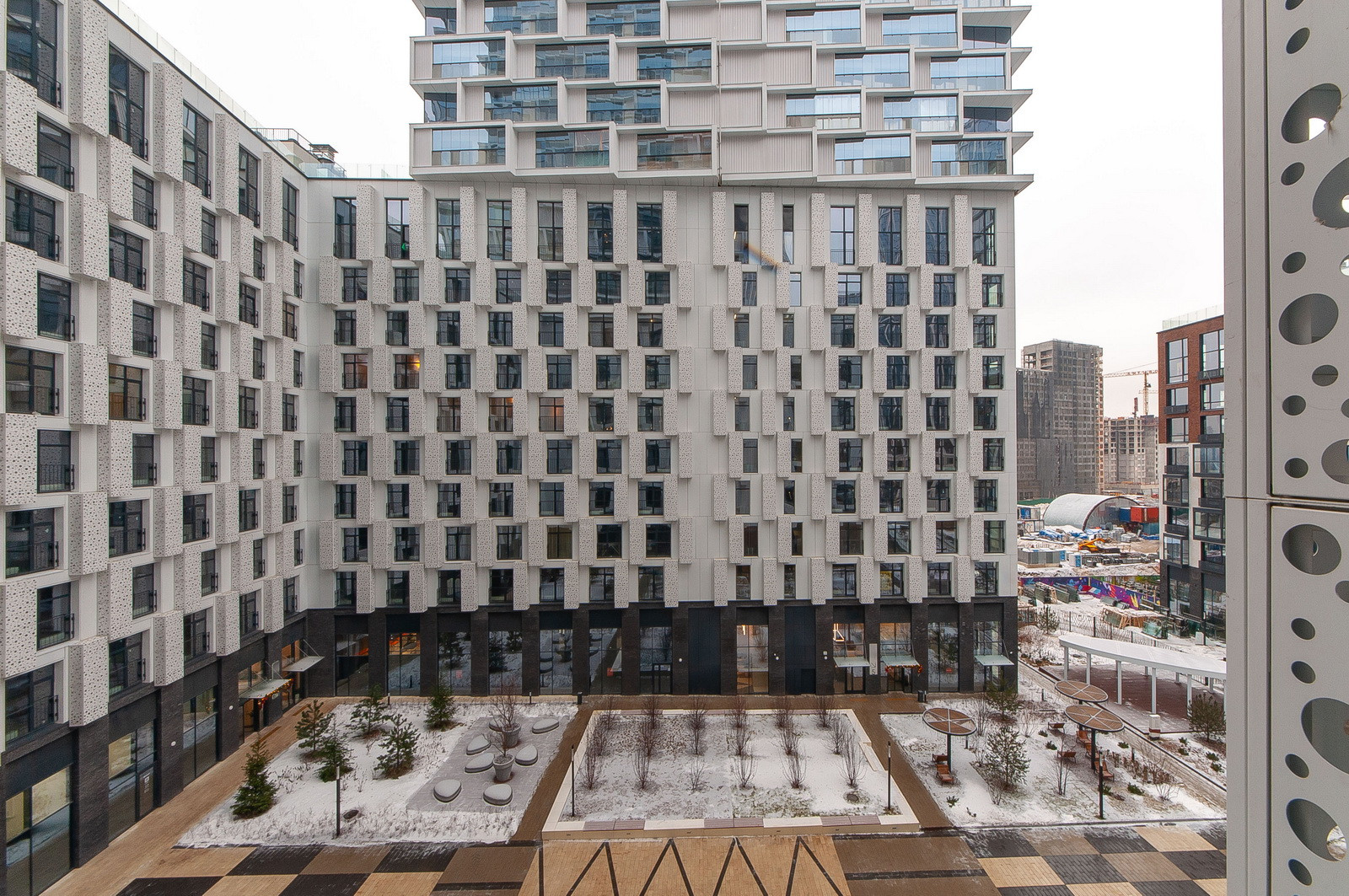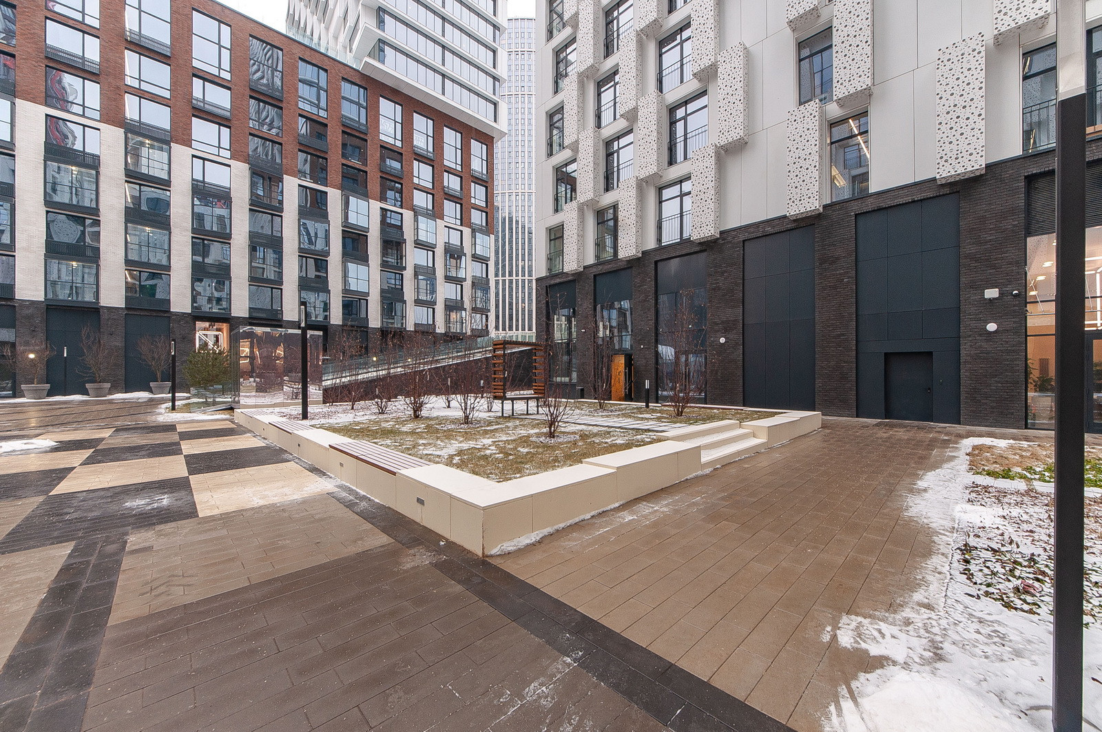 В ЖК есть собственный ухоженный внутренний двор с детскими, спортивными площадками, точками для занятий йогой, местами для отдыха.
