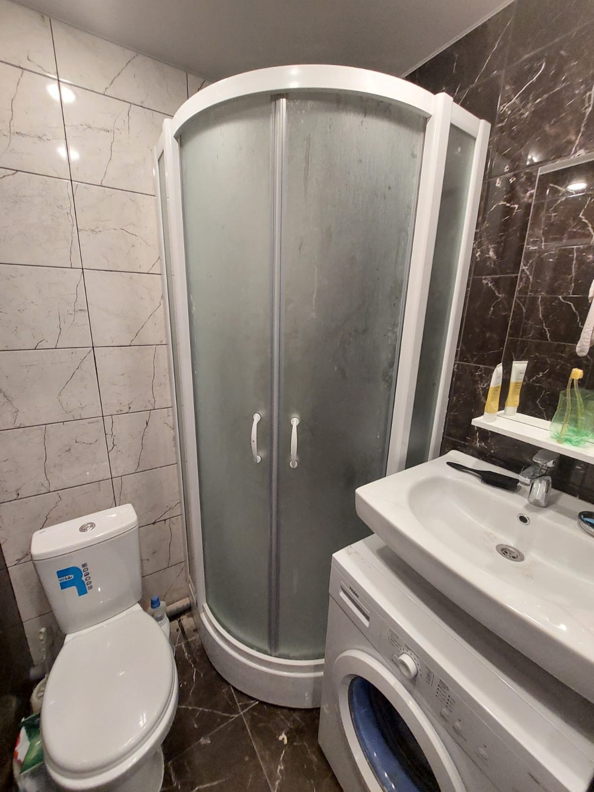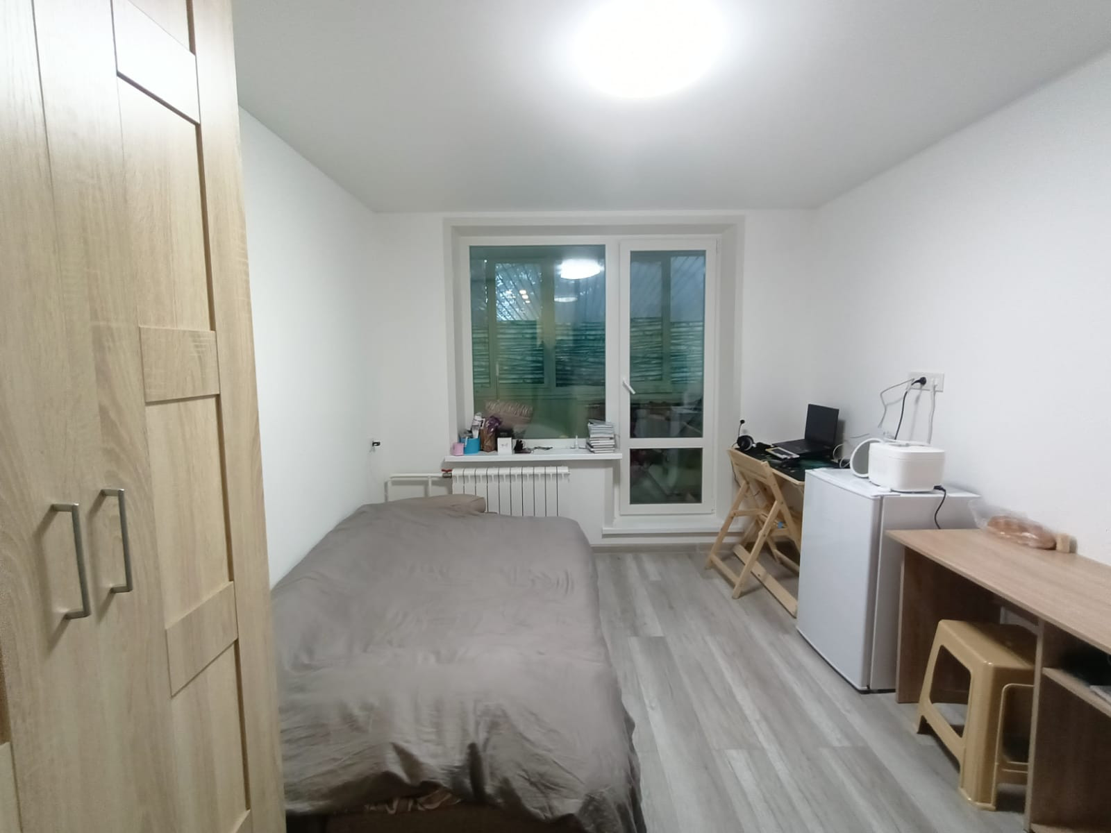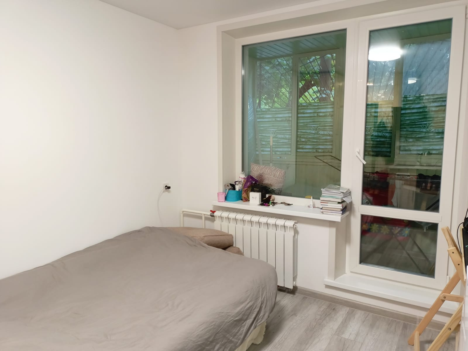 Свежий ремонт, натяжные потолки, стены выровнены покраска, на полу ламинат, в зоне кухни плитка, санузел в плитке, установлена сантехника, индивидуальные приборы учёта, радиаторы новые. Обставлена мебелью и техникой, заселен арендатор за 35тр.в месяц.