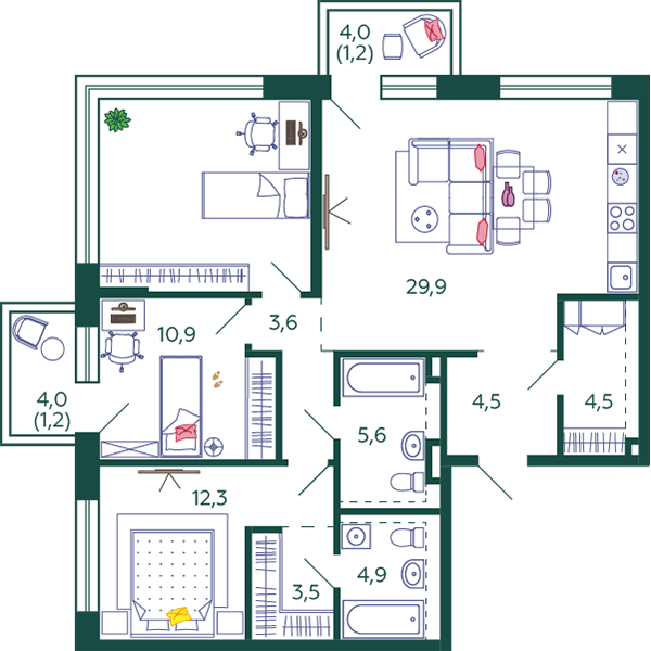 Количество комнат 3