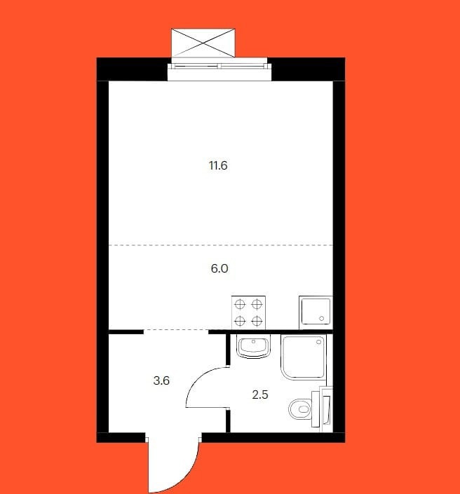 Жилая площадь 11.6 м2