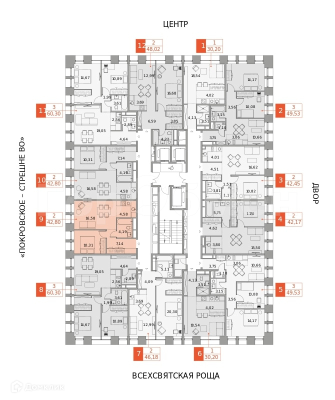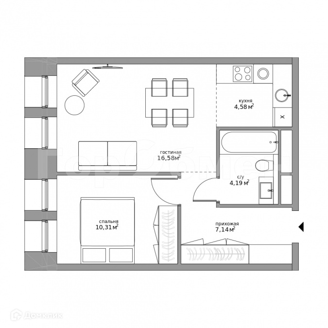 Общая площадь 42.8 м2