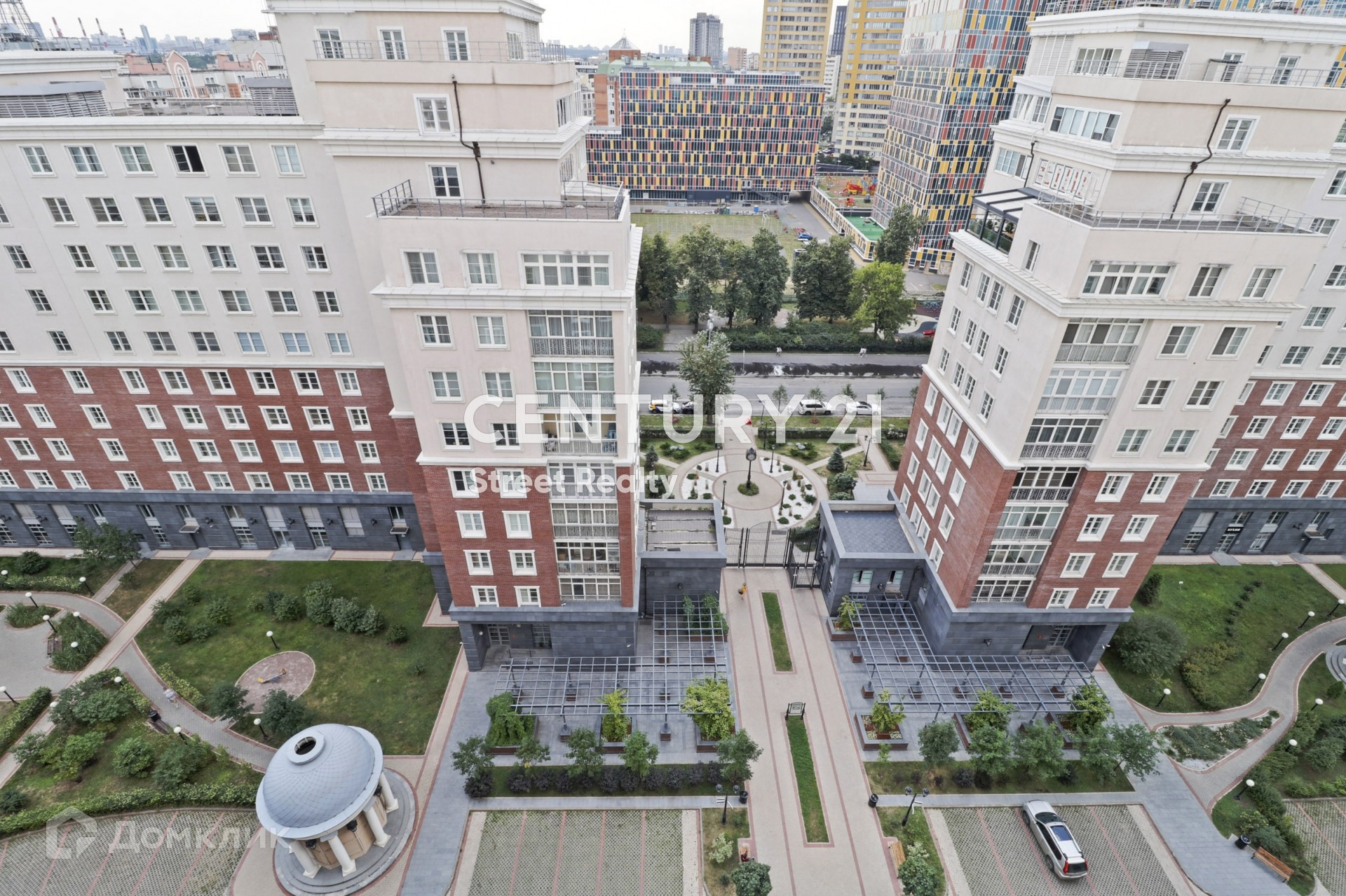 Колонны, декоративные парапеты, витражи и презентабельные входные группы придают зданиям аристократический облик. В оформлении холлов с полноценными зонами отдыха использованы натуральное дерево и другие качественные экологичные материалы. Дизайн разработан итальянской компанией Interstudio. На территории два детских сада, СПА-центры, кафе, супермаркет "Азбука вкуса", отделения банков. Ночью предусмотрено архитектурное освещение фасадов.