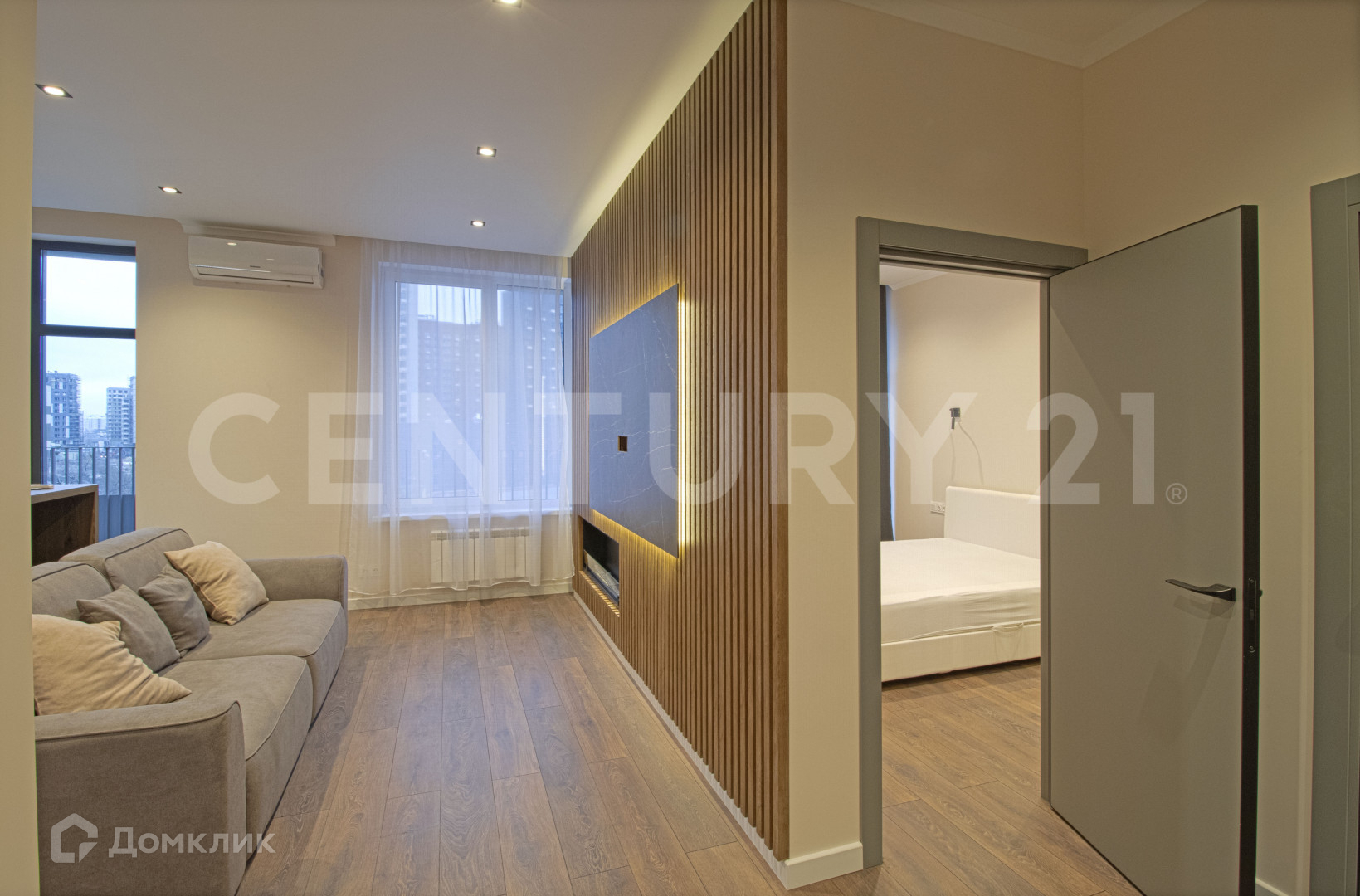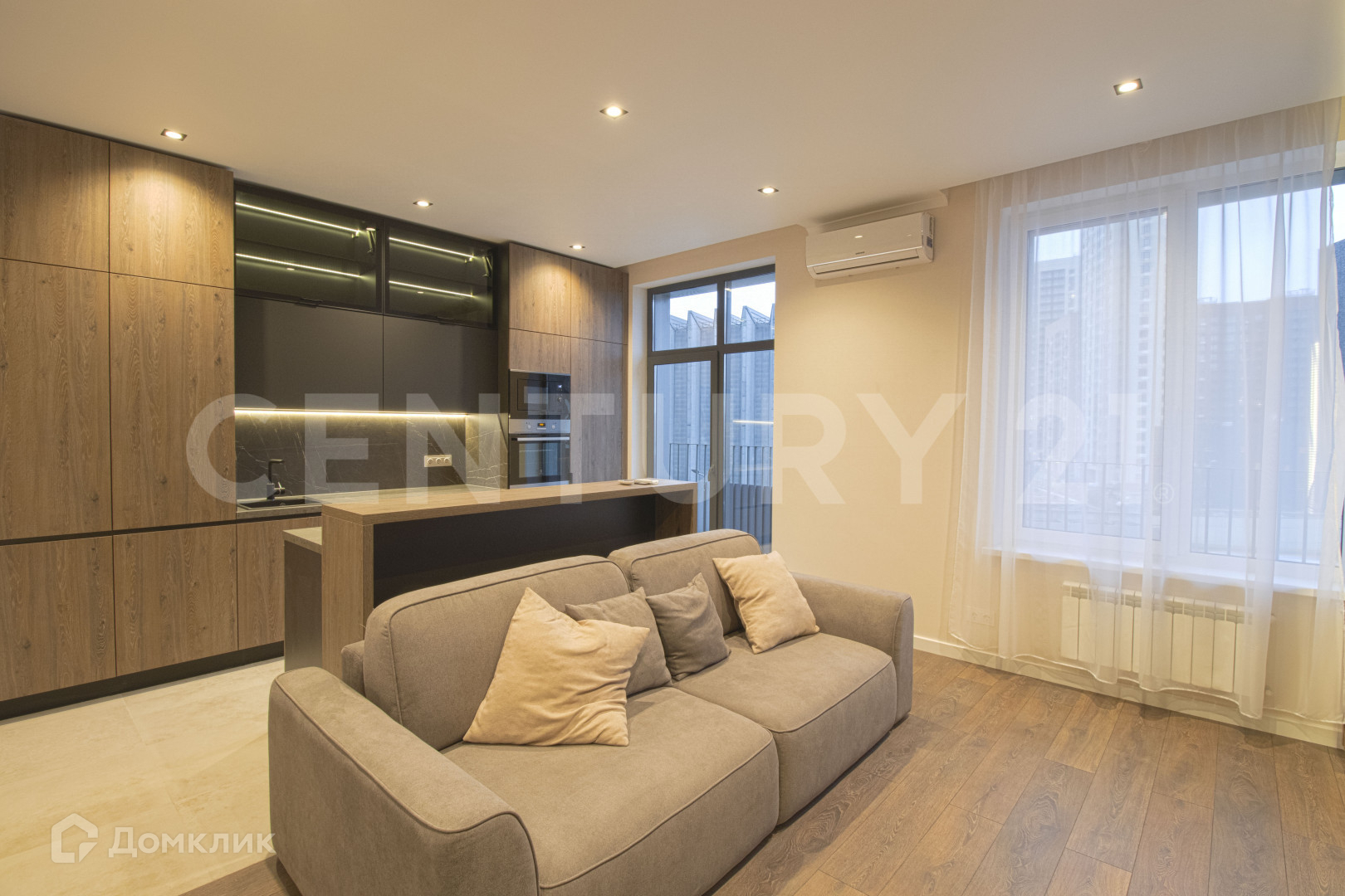 Панорамные окна во всей квартире с внутрипольными конвекторами.