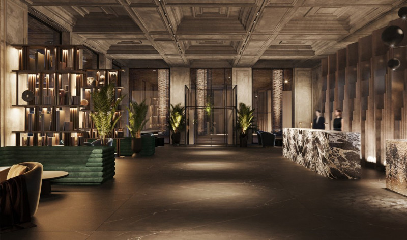 В центральном лобби дизайнеры выбрали классическую основу с ее монументальностью и изысканностью, внедрив в нее современные элементы в виде мебели о освещения.