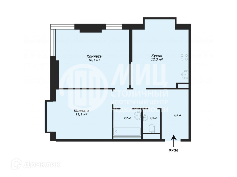 Общая площадь 52.6 м2