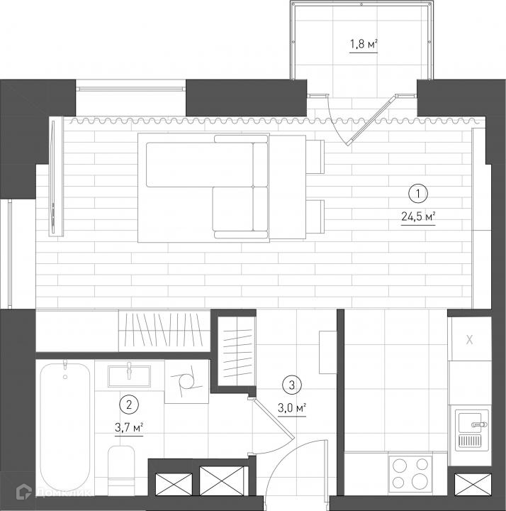 Общая площадь 33 м2