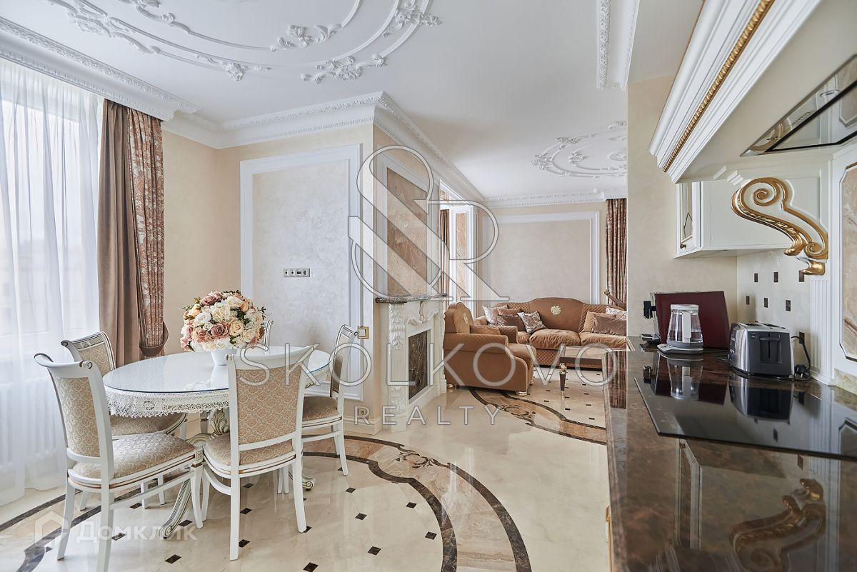 Ремонт выполнен в классическом стиле. Отделка исключительно из экологически чистых материалов европейских производителей премиум-класса, итальянский мрамор. Мебель из алькантары выполнена на заказ, кухня Италия, лучшая качественная сантехника, бытовая техника Kuppersbusch последнего поколения. Продуманные, функциональные и очень удобные системы хранения.