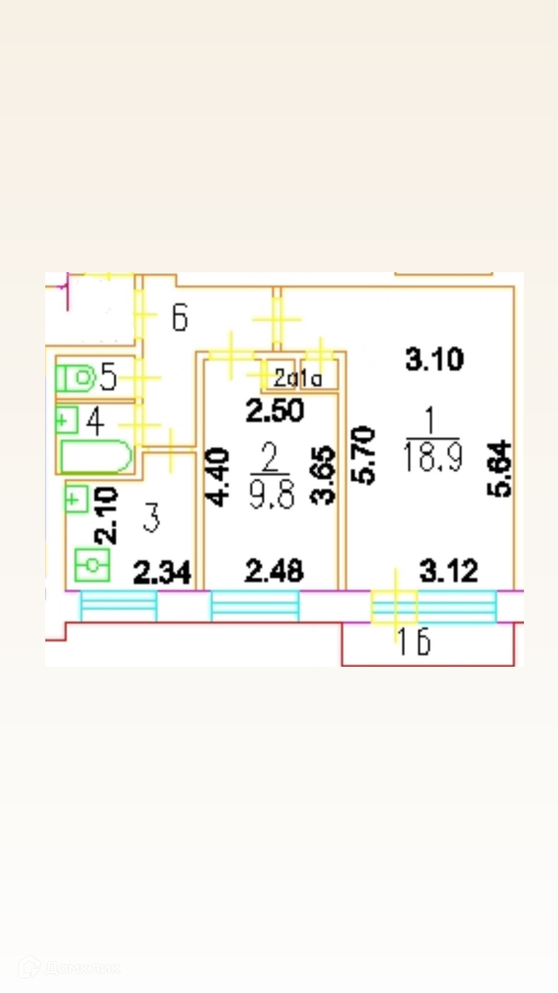 Общая площадь 43 м2