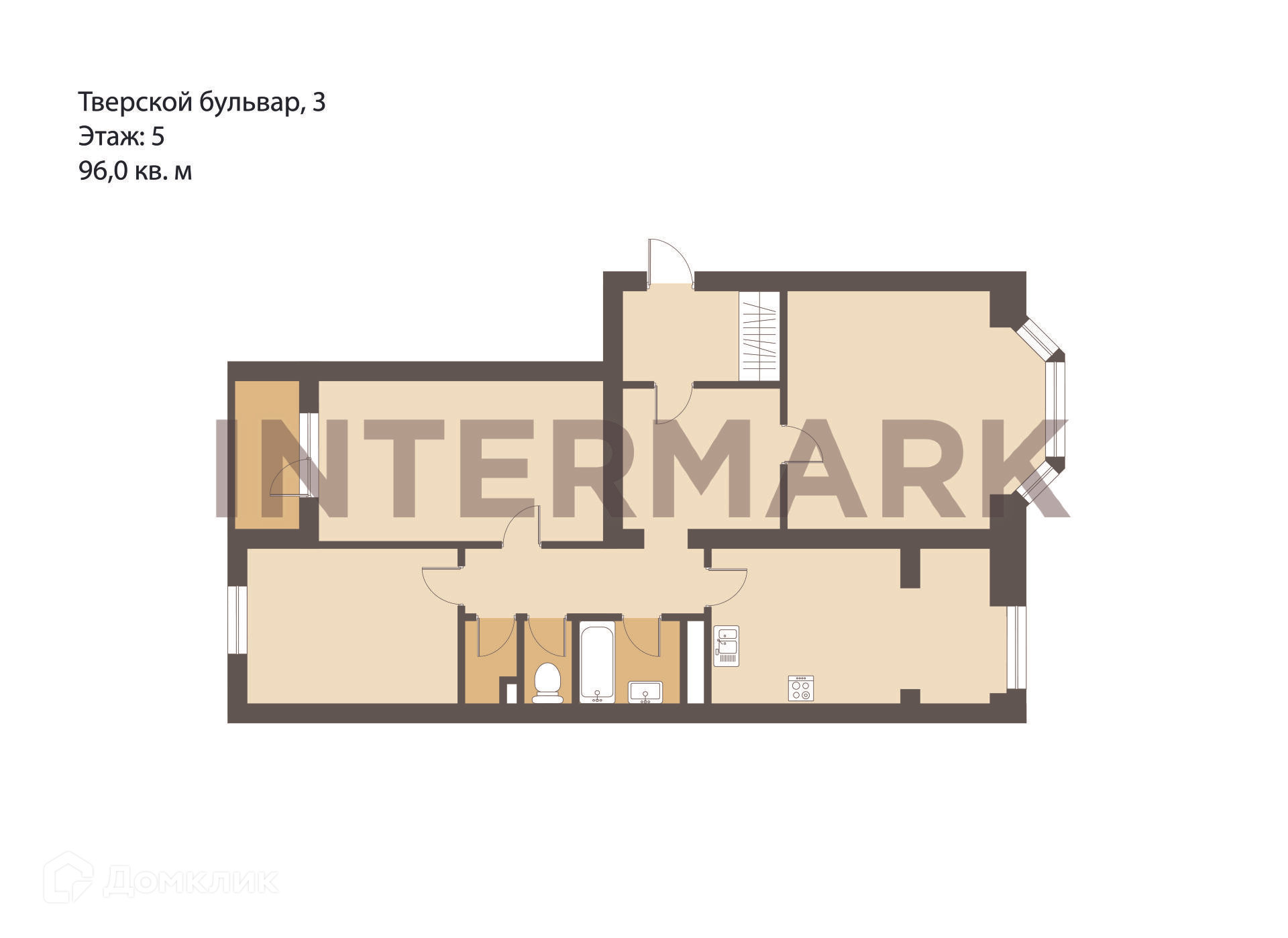 3-комнатная квартира, 96 м2, этаж 5 / 6, на продажу в Москве, Тверской бульвар, 3