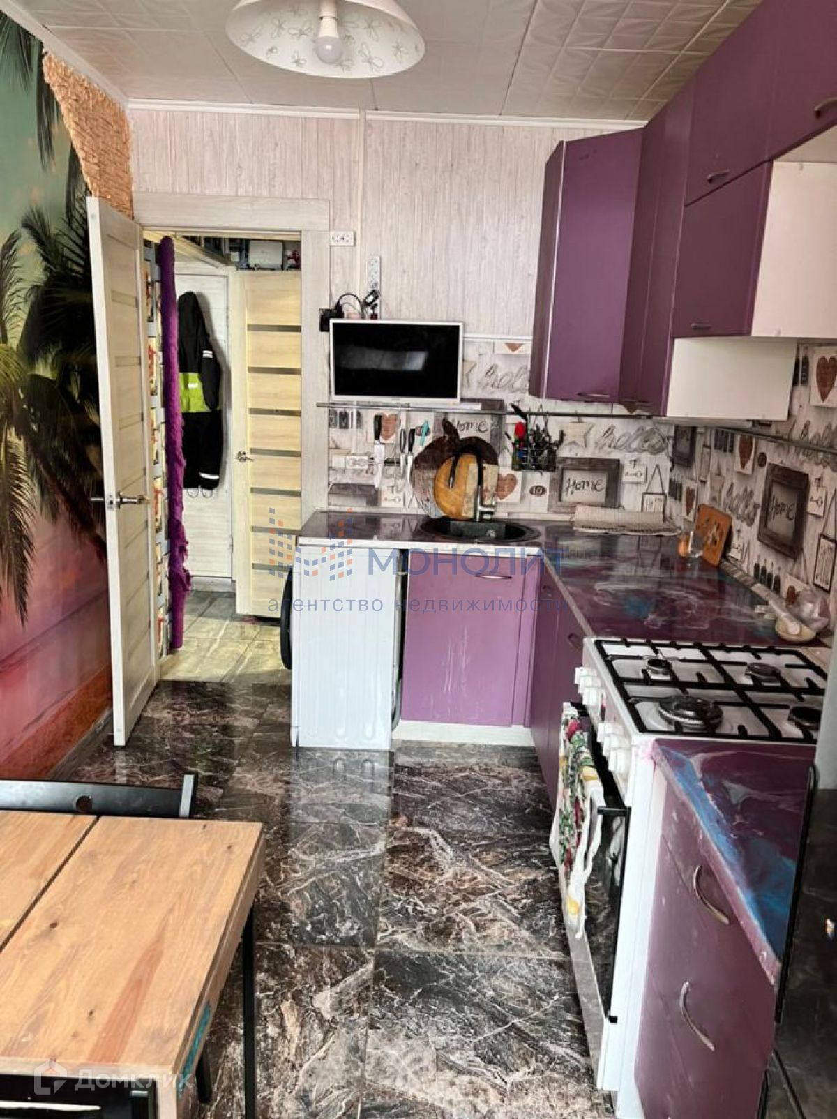 Продается теплая светлая квартира с застеклённым балконом, кухней, плитой и сантехникой.