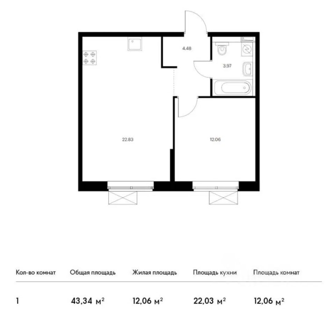Общая площадь 43 м2