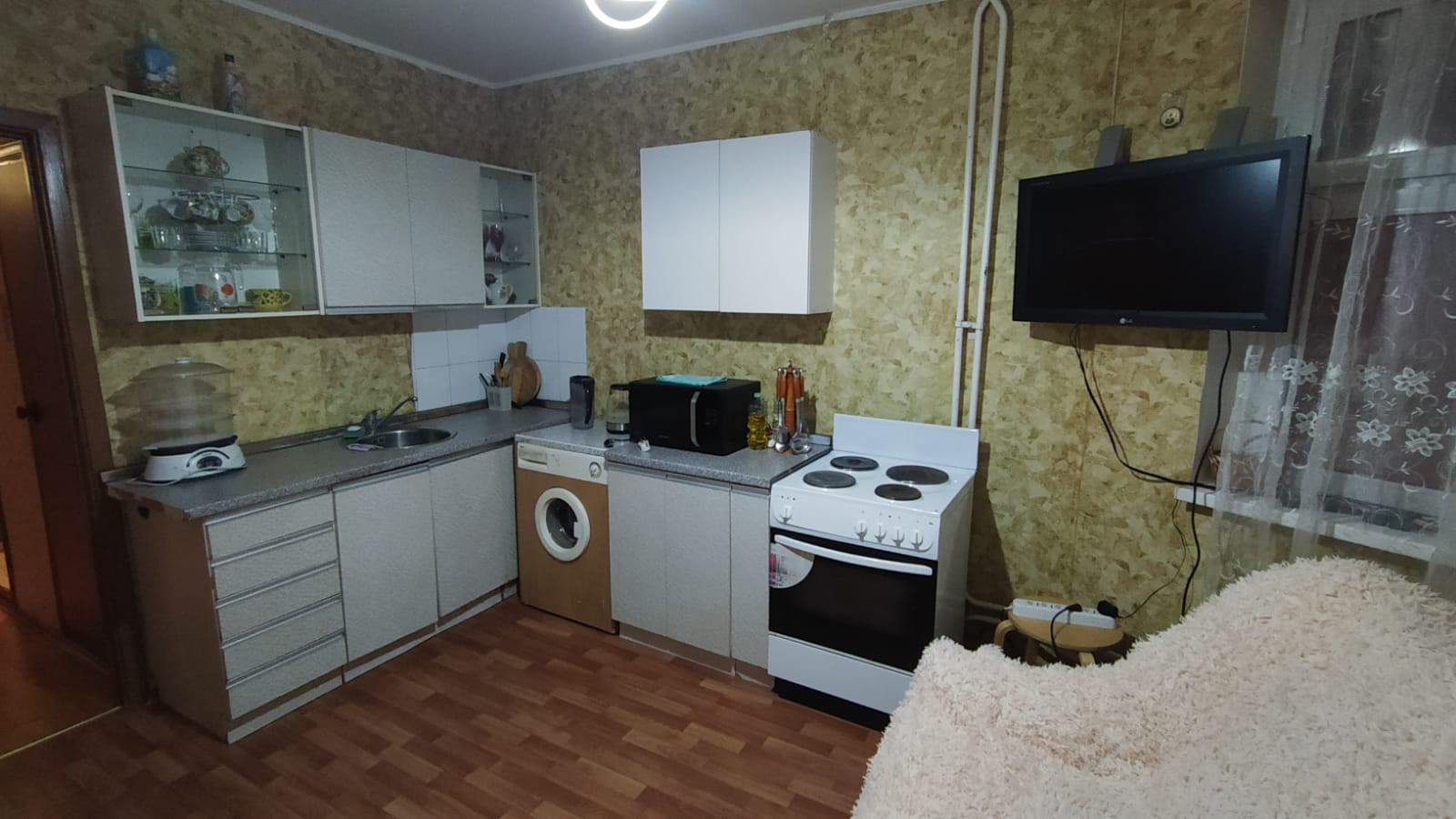 Квартира в среднем состоянии , все комнаты изолированные, большая кухня с эркером, 2 застекленных лоджии! Сан узел раздельный .
