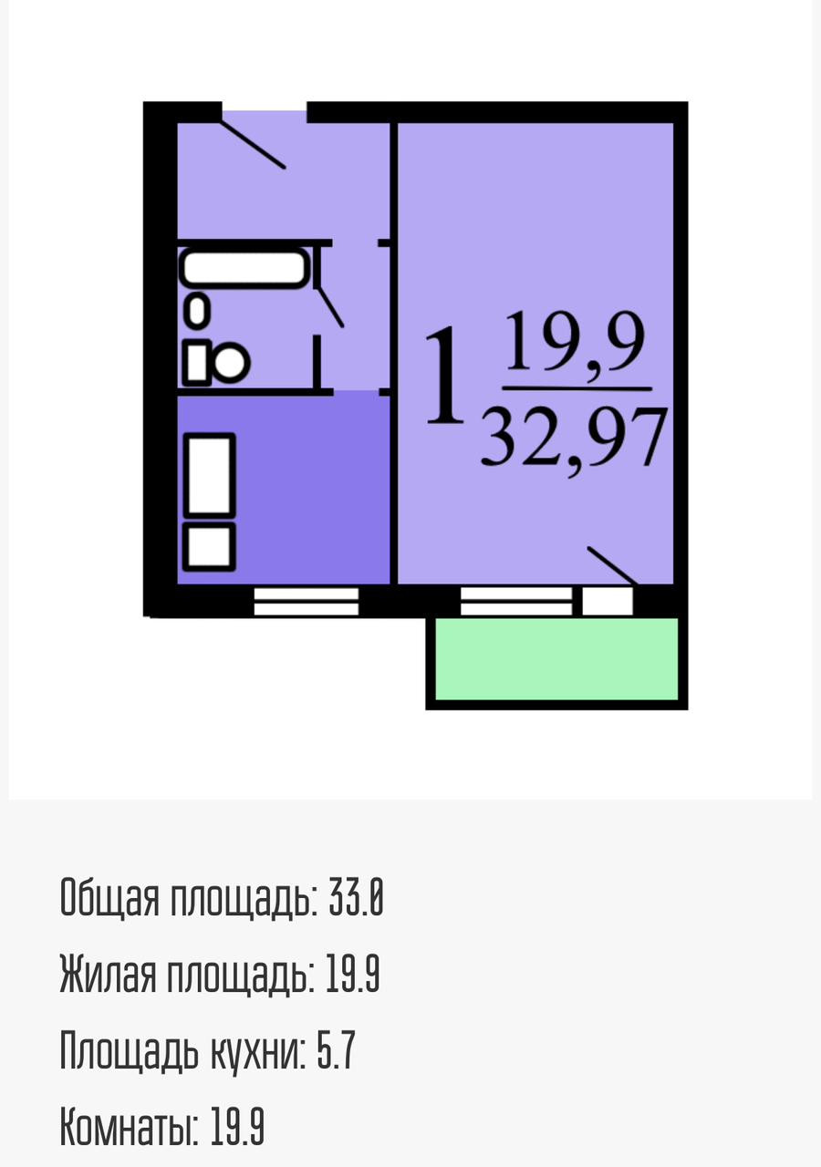 Общая площадь 33.2 м2