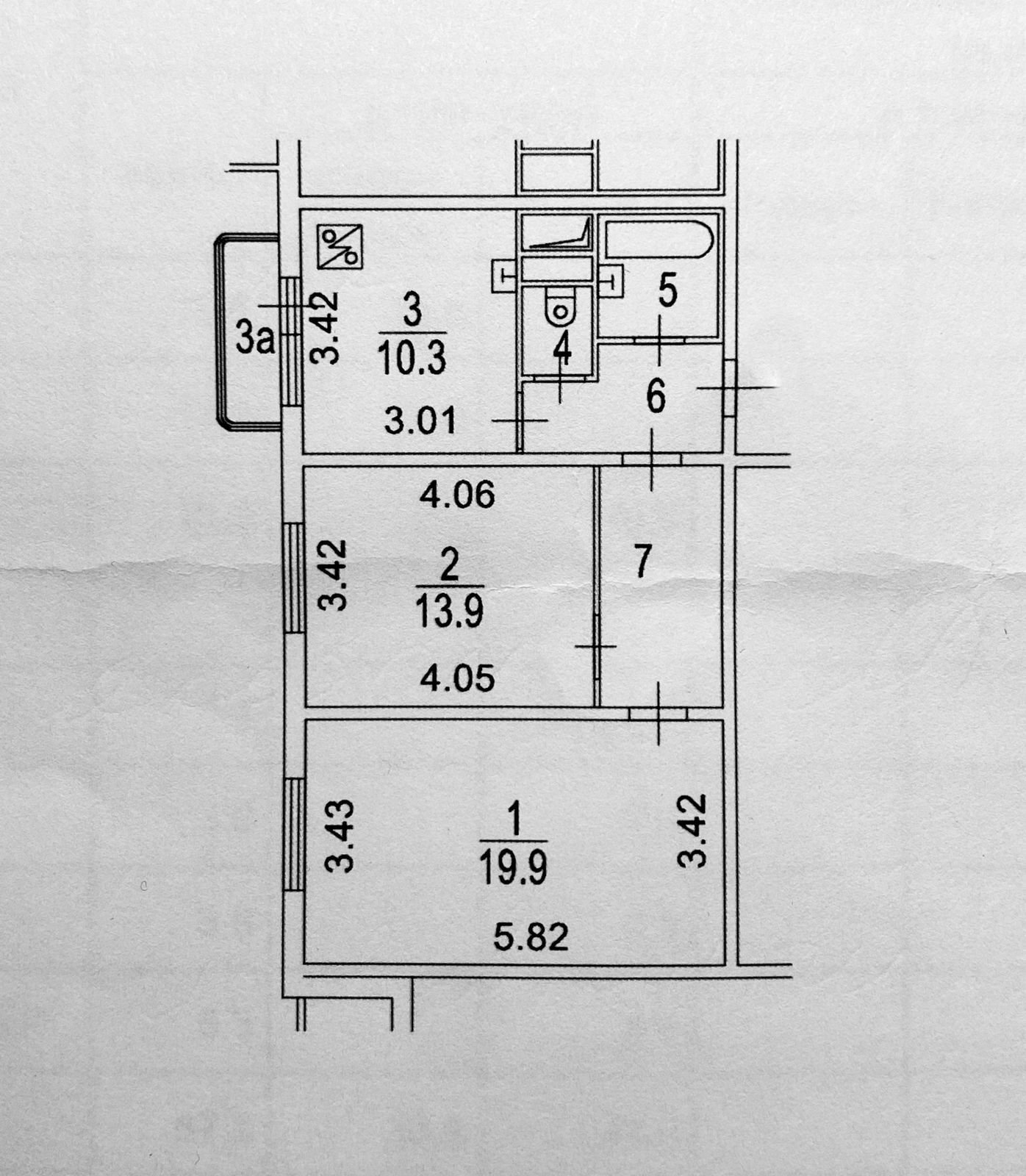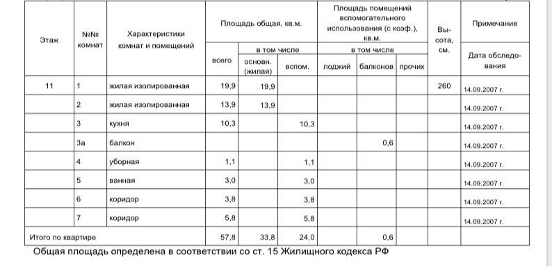 Общая площадь 57.8 м2
