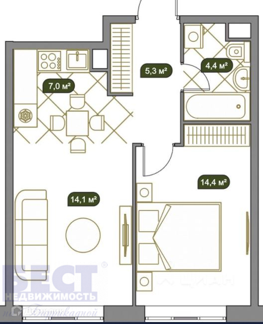 Общая площадь 45 м2