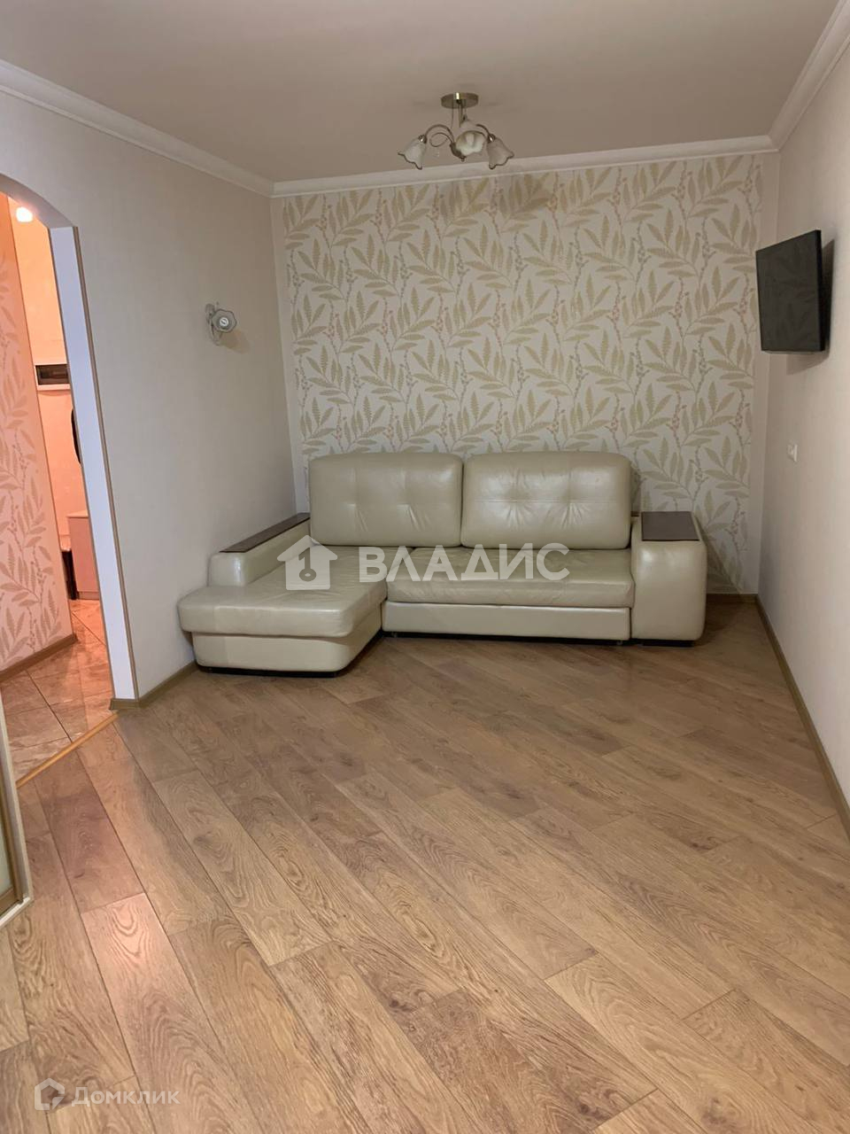 На полу ламинат, в прихожей, на кухне и санузле - плитка.