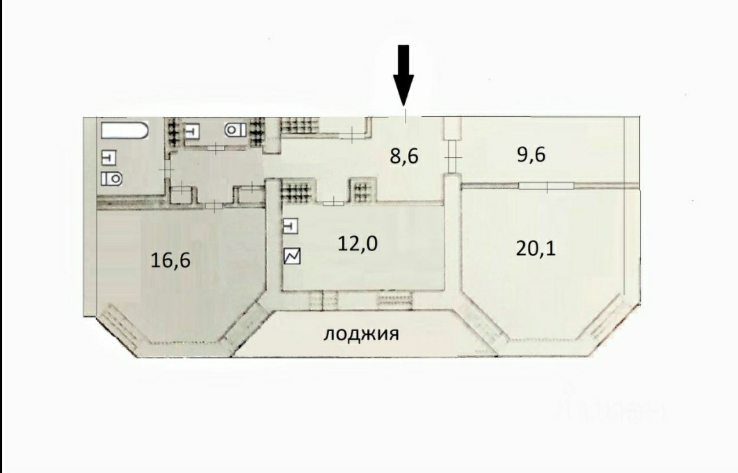 Балкон, лоджия 1 балкон