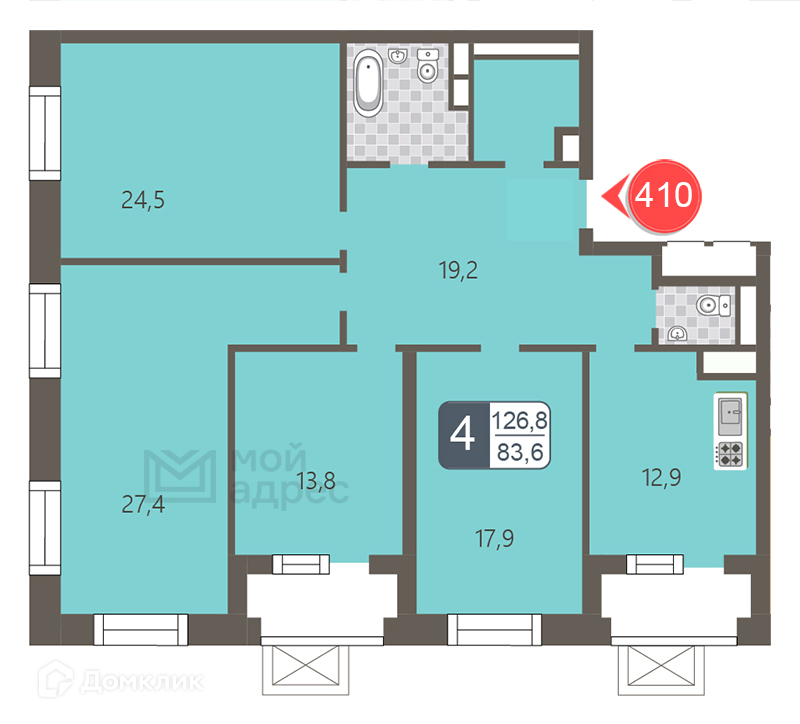 Общая площадь 126.8 м2