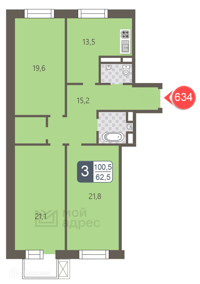 Общая площадь 100.5 м2