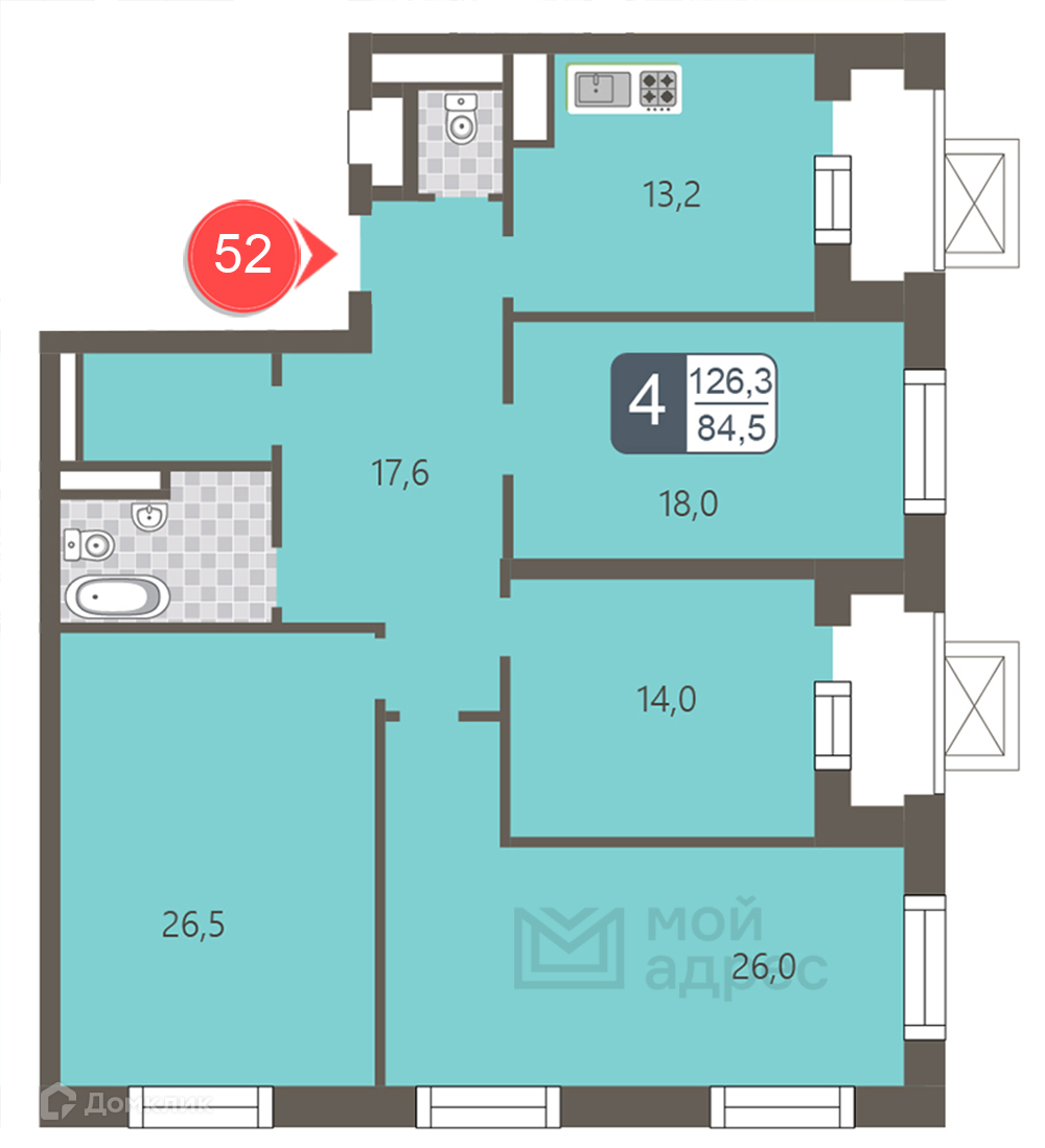 Общая площадь 126.3 м2