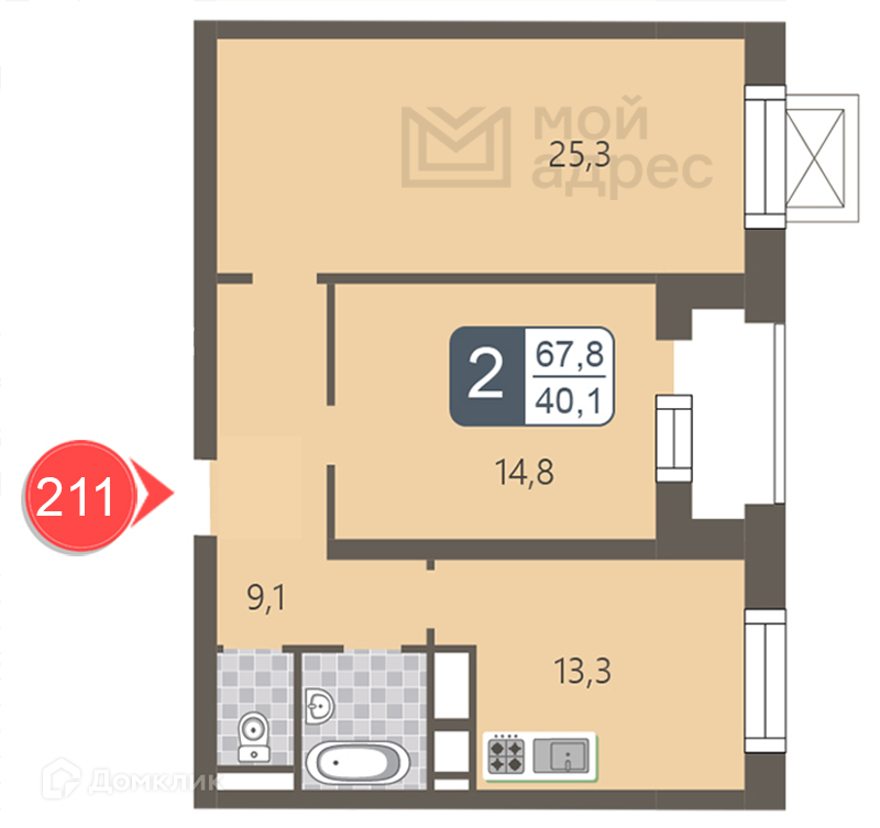 Общая площадь 67.8 м2