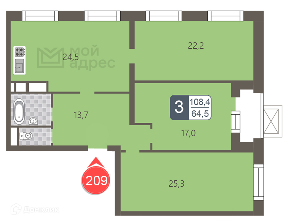 Общая площадь 108.4 м2