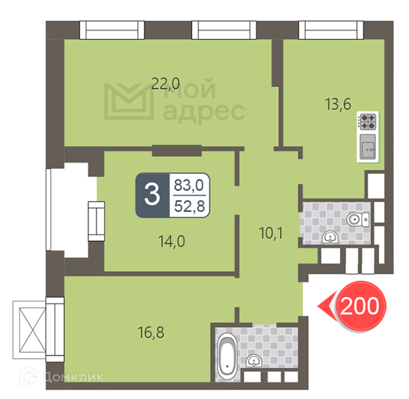 Общая площадь 83 м2