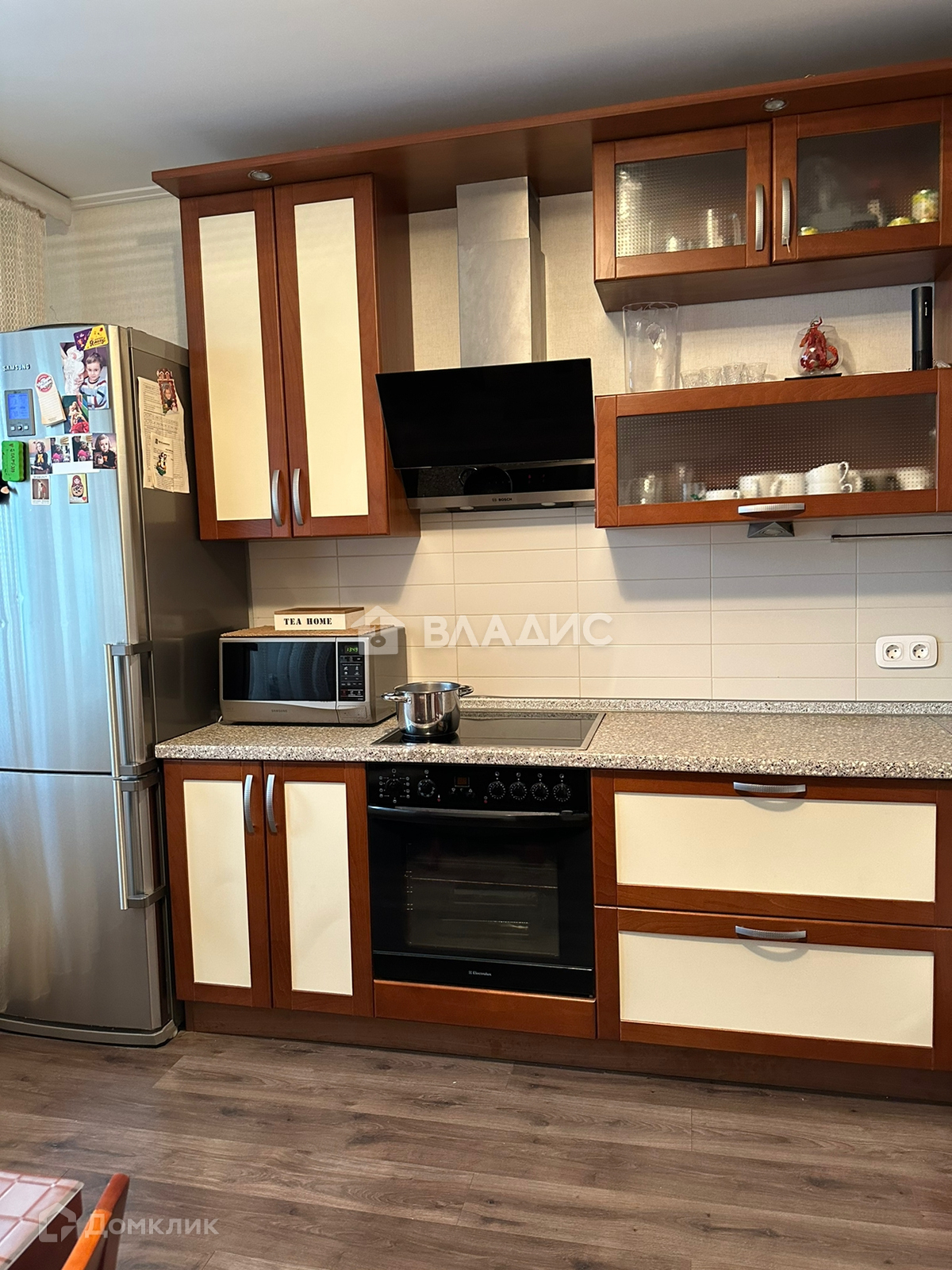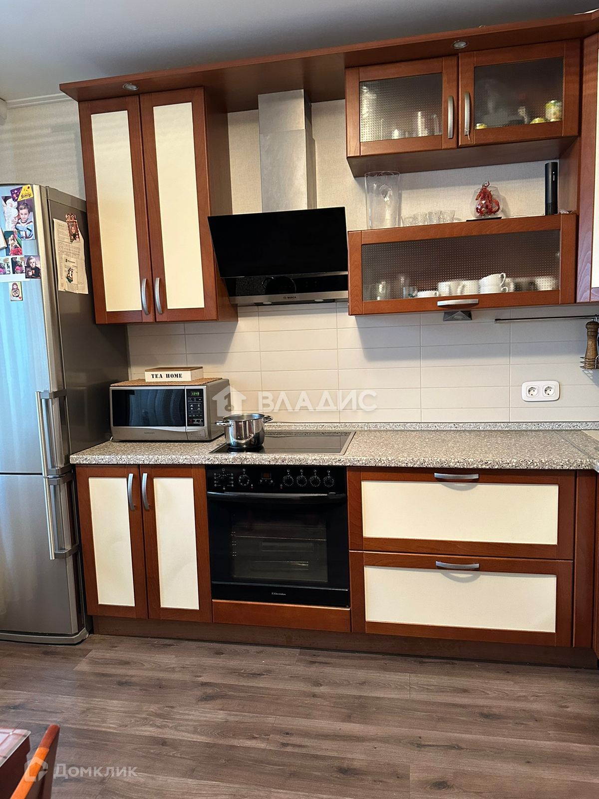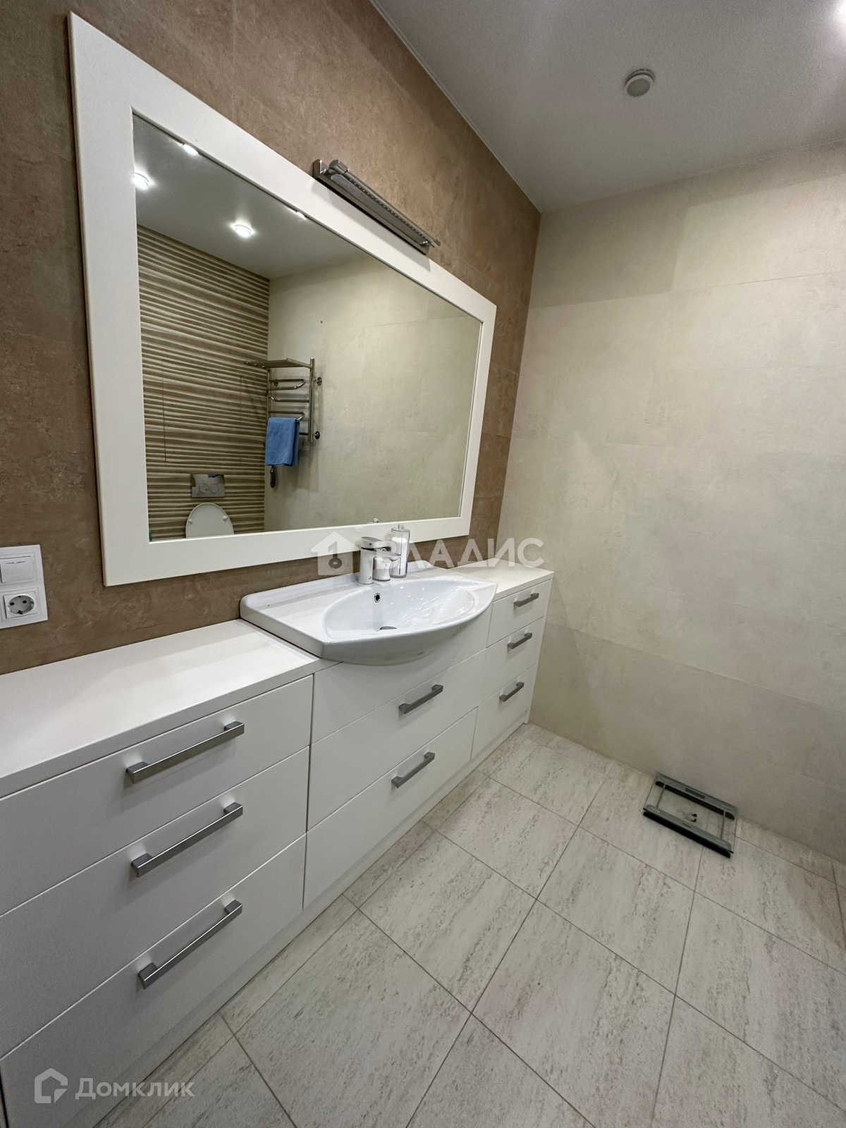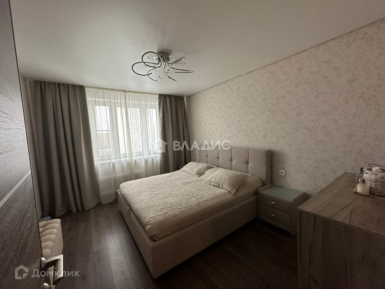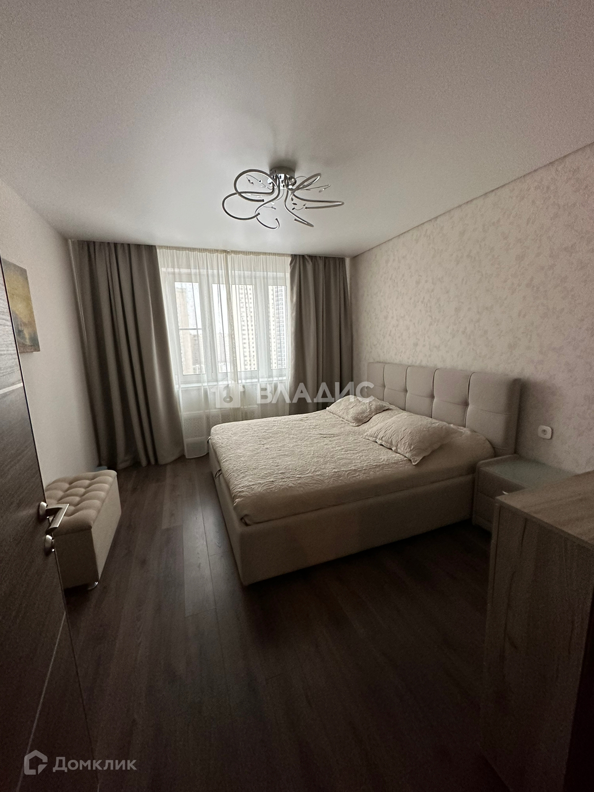 В квартире дизайнерский, качественный ремонт из дорогих материалов, 3 спальни, гостинная, кухня со встроенной техникой, гардеробная.