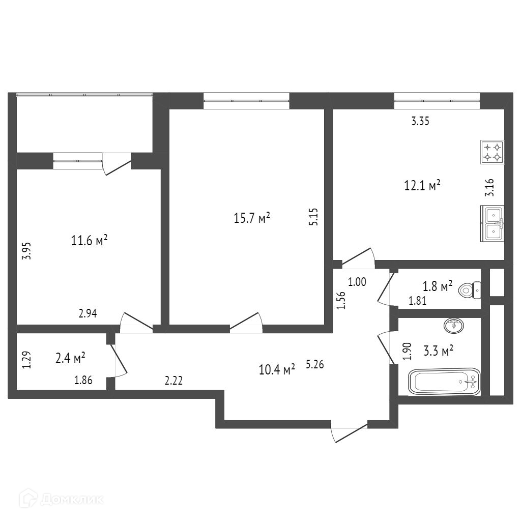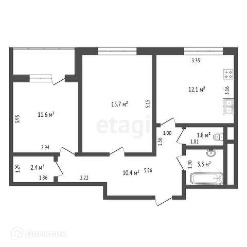 Общая площадь 57.3 м2