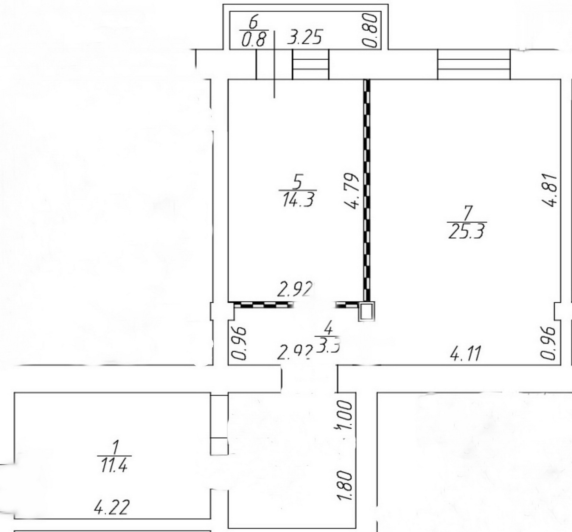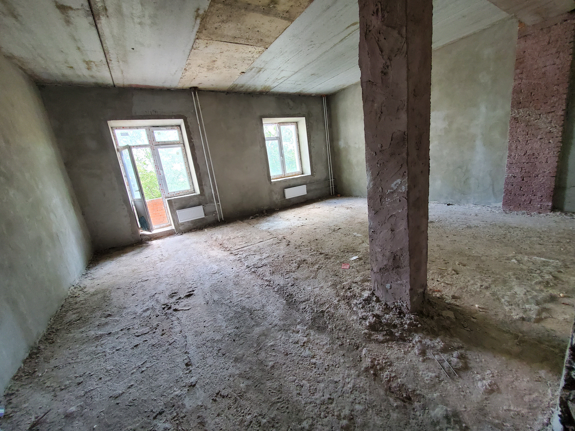 В квартире комната 25 кв.м, санузел 5 кв.м., просторный коридор 19 кв.м. и кухня 15 кв.м. Окна выходят во двор. Свободная планировка. Высокие потолки 3,20м.