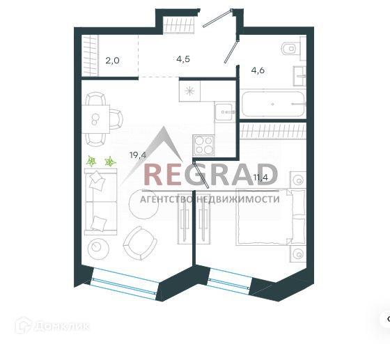 Общая площадь 46 м2
