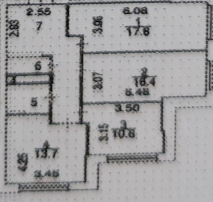 Жилая площадь 45.5 м2