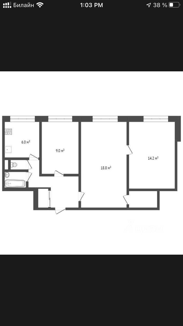 Жилая площадь 48.2 м2